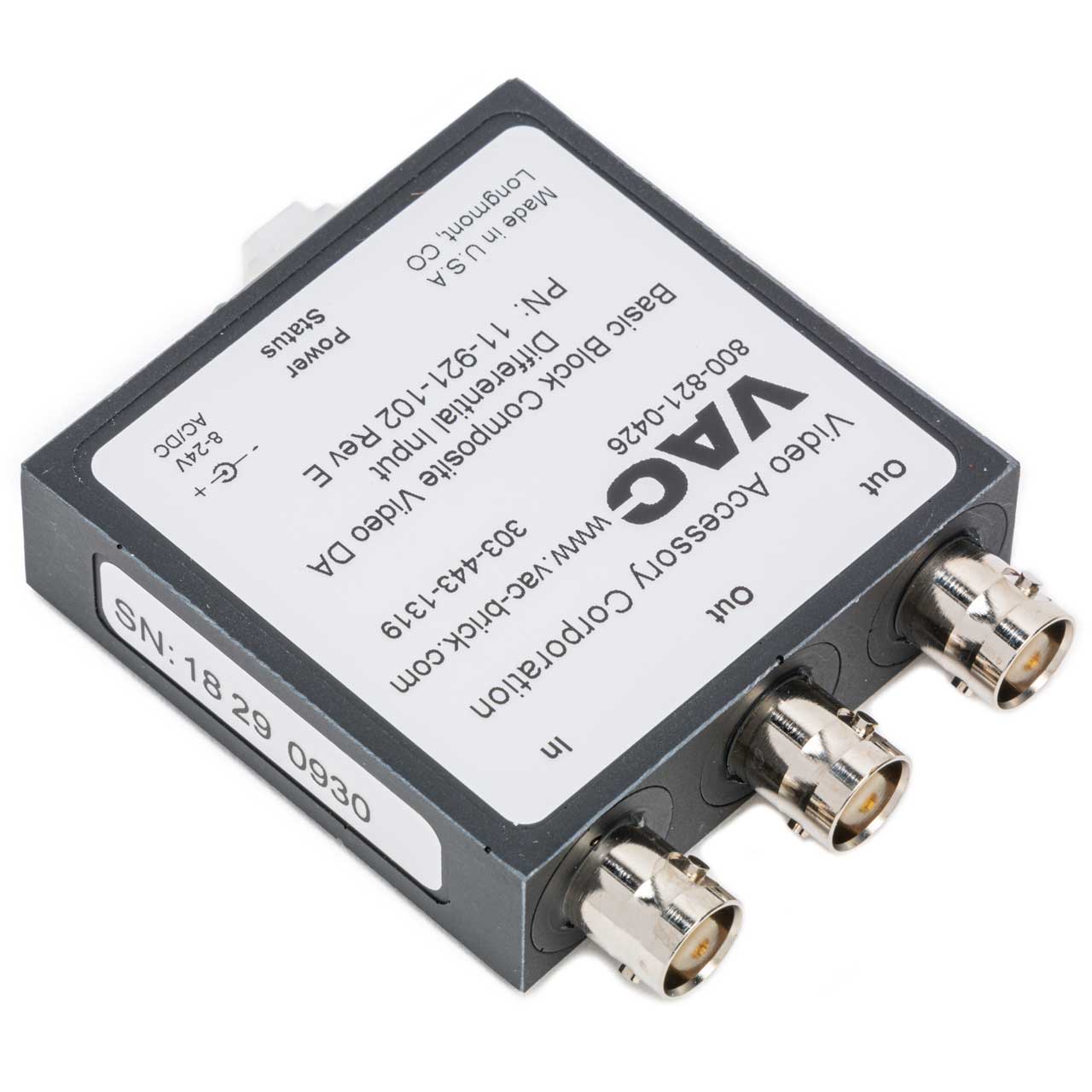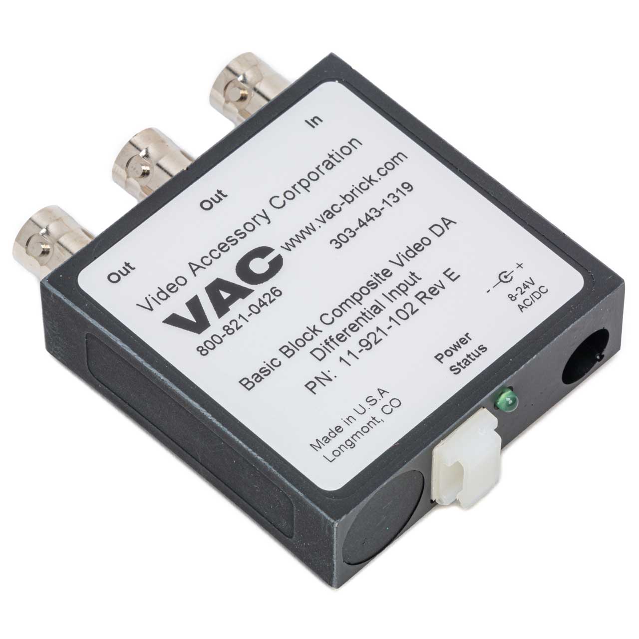 Part of the Basic Block series of VAC Bricks, the 11-921-102 Mini is a 1x2 composite video distribution amplifier with unity gain via differential inputs on 75 Ohm BNC connectors. It is perfect for distributing blackburst and color bar signals.