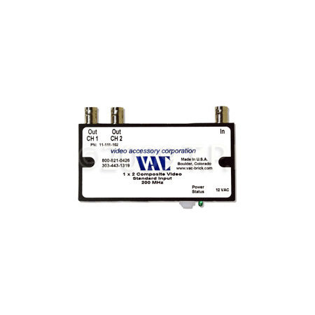 VAC 11-923-101 1x2 Mini-Brick Video Distribution Amp with BNCs. Single gain control adjusts both outputs.