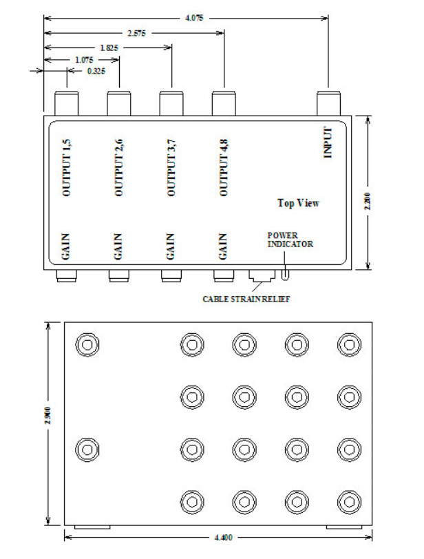 Compact (2.2"D x 4.4"W x 2.9"H), broadcast-quality 1X8 unbalanced stereo audio distribution amplifier with separate variable gain control for each output. RCA connectors; 12V AC input; wall transformer. Epoxy-encapsulated for exceptional durability and reliability.