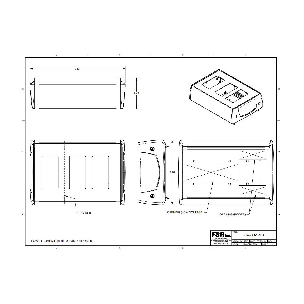 FSR 18211/SW-DB-1P2D 2-Gang Device Box Accepts 1 Power & 1 Data Decora Insert For Use w/ Smart-Way Floor Raceway