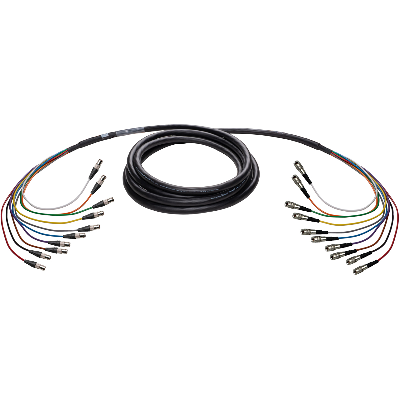 Laird 10-Channel 4855R 12G-SDI/4K UHD DIN snake cables are the next-gen Mini-RG59 DIN cable designed to handle 12GHz 4K UHD signals with a clean signal delivery up to 117 feet (3G-SDI up to 300 feet). These DIN 1.0/2.3 Male to BNC Female cables provide the critical link between your switchers, cameras and other 4K video gear. Hand crafted assemblies featuring 4855R 4K Ultra-High-Definition coaxial cable for 12G-SDI, these cables are the simple choice when setting up your studio backbone and infrastructure. Why run multiple cables when one will do the job! Laird's DIN cables are ready to meet today's high bandwidth 12G-SDI signal / data serial interface requirements. The 4855R Series is the 12G-SDI equivalent of Belden's famous 1855A cable. It features a silver plated copper center conductor and is the ideal choice for installations in studios, stadiums and live event venues. Custom lengths are always available.