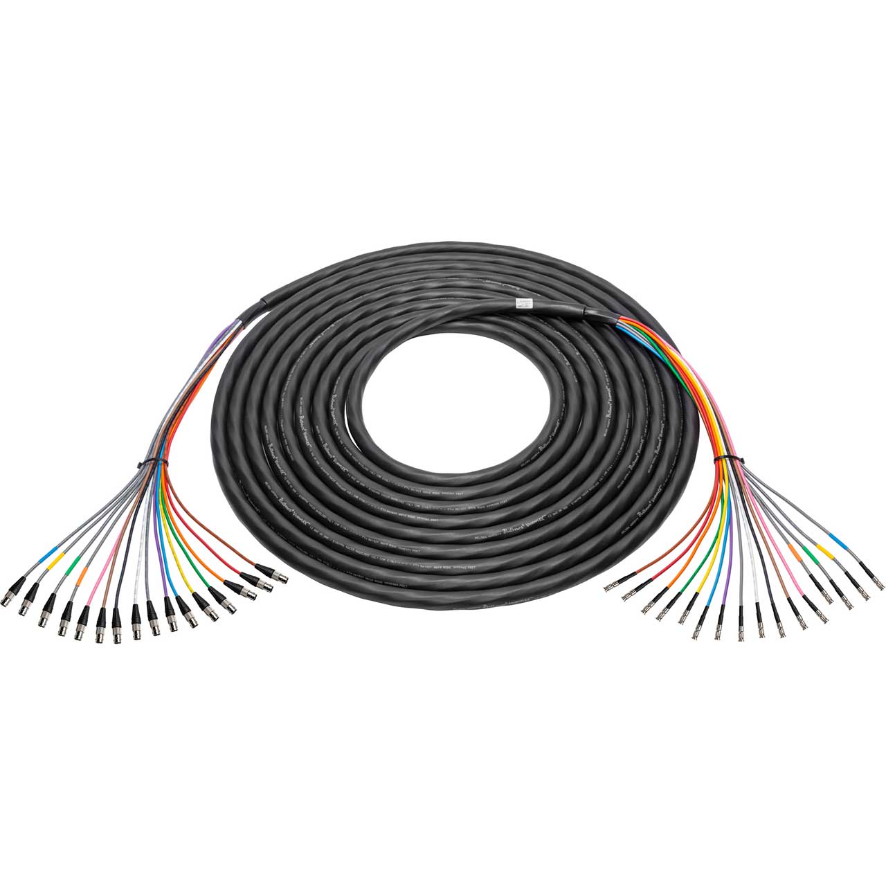Laird 16-Channel 4855R 12G-SDI/4K UHD BNC snake cables are the next-gen Mini-RG59 BNC cable designed to handle 12GHz 4K UHD signals with a clean signal delivery up to 117 feet (3G-SDI up to 300 feet). These BNC Female to HD-BNC Male cables provide the critical link between your switchers, cameras and other 4K video gear. Hand crafted assemblies featuring 4855R 4K Ultra-High-Definition coaxial cable for 12G-SDI, these cables are the simple choice when setting up your studio backbone and infrastructure. Why run multiple cables when one will do the job! Laird's BNC cables are ready to meet today's high bandwidth 12G-SDI signal / data serial interface requirements. The 4855R Series is the 12G-SDI equivalent of Belden's famous 1855A cable. It features a silver plated copper center conductor and is the ideal choice for installations in studios, stadiums and live event venues. Custom lengths are always available.