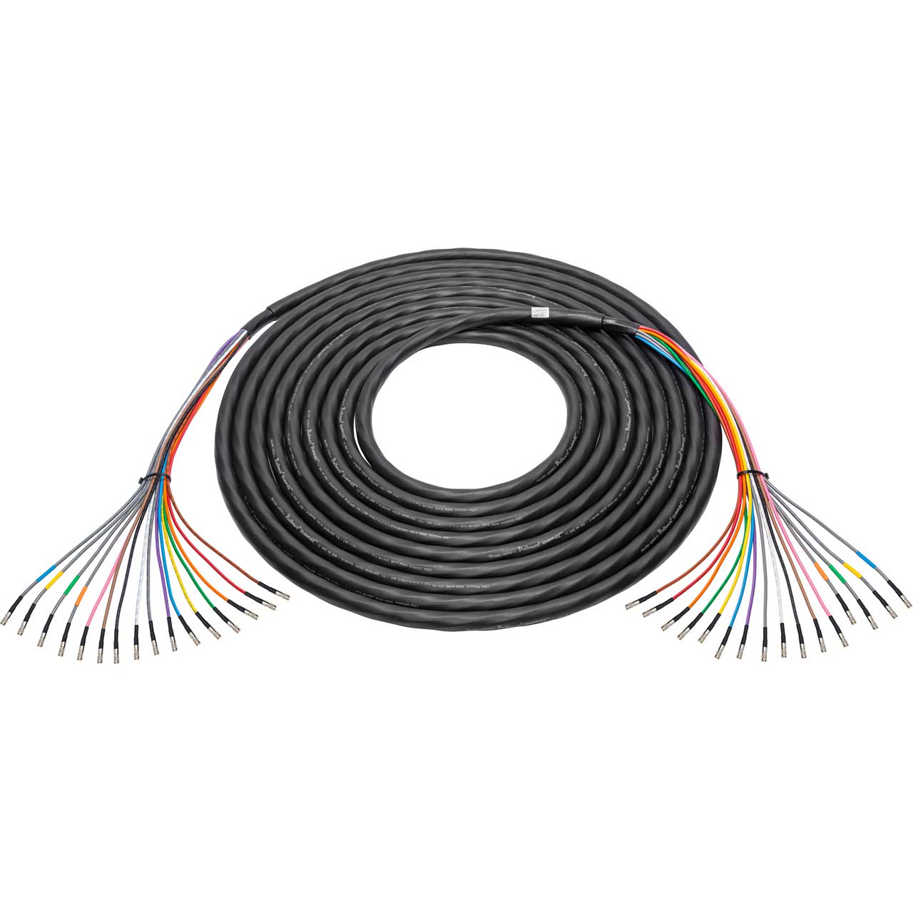 Laird 16-Channel 4855R 12G-SDI/4K UHD DIN snake cables are the next-gen Mini-RG59 DIN cable designed to handle 12GHz 4K UHD signals with a clean signal delivery up to 117 feet (3G-SDI up to 300 feet). These DIN 1.0/2.3 Male to DIN 1.0/2.3 Male cables provide the critical link between your switchers, cameras and other 4K video gear. Hand crafted assemblies featuring 4855R 4K Ultra-High-Definition coaxial cable for 12G-SDI, these cables are the simple choice when setting up your studio backbone and infrastructure. Why run multiple cables when one will do the job! Laird's DIN cables are ready to meet today's high bandwidth 12G-SDI signal / data serial interface requirements. The 4855R Series is the 12G-SDI equivalent of Belden's famous 1855A cable. It features a silver plated copper center conductor and is the ideal choice for installations in studios, stadiums and live event venues. Custom lengths are always available.