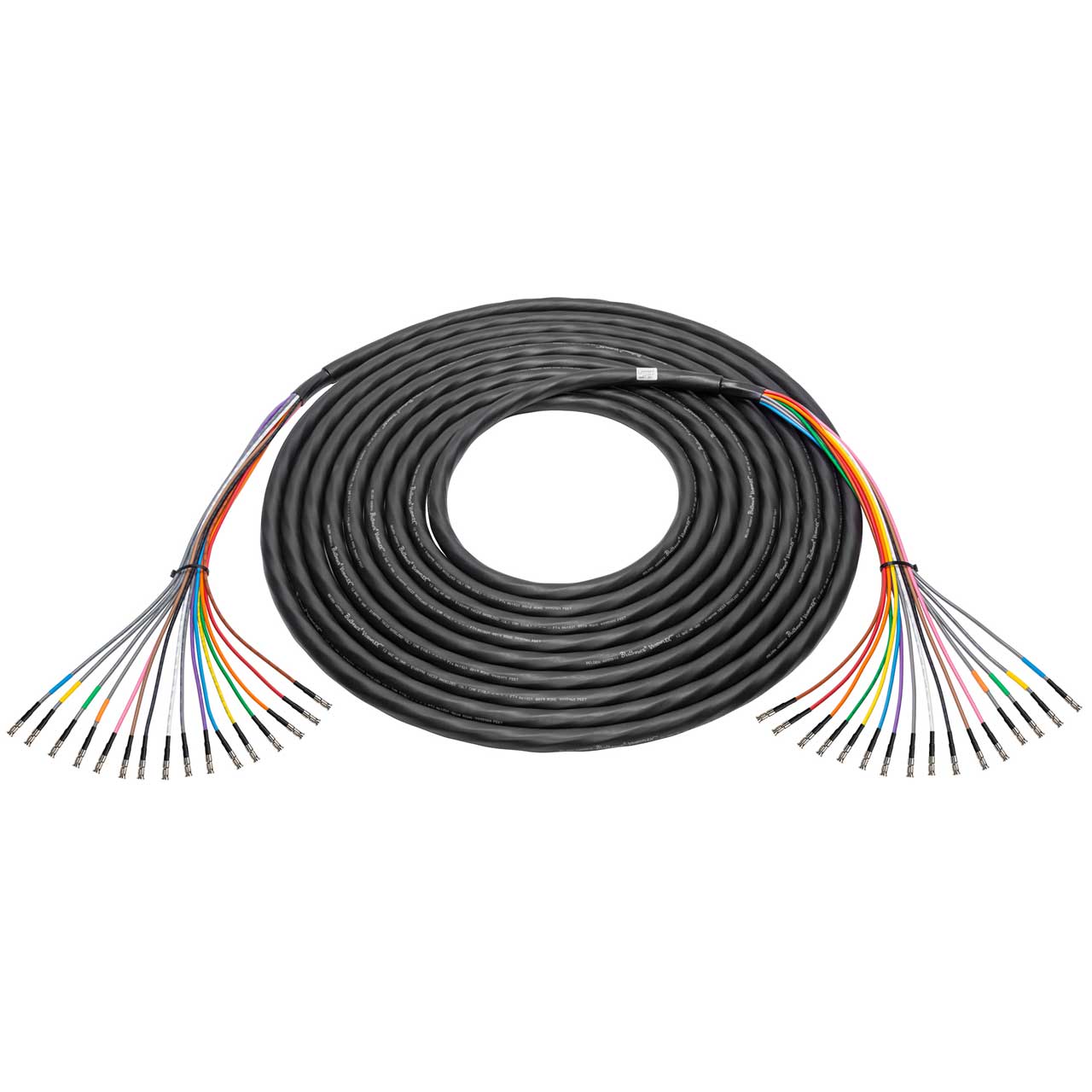Laird 16-Channel 4855R 12G-SDI/4K UHD BNC snake cables are the next-gen Mini-RG59 BNC cable designed to handle 12GHz 4K UHD signals with a clean signal delivery up to 117 feet (3G-SDI up to 300 feet). These HD-BNC Male to HD-BNC Male cables provide the critical link between your switchers, cameras and other 4K video gear. Hand crafted assemblies featuring 4855R 4K Ultra-High-Definition coaxial cable for 12G-SDI, these cables are the simple choice when setting up your studio backbone and infrastructure. Why run multiple cables when one will do the job! Laird's BNC cables are ready to meet today's high bandwidth 12G-SDI signal / data serial interface requirements. The 4855R Series is the 12G-SDI equivalent of Belden's famous 1855A cable. It features a silver plated copper center conductor and is the ideal choice for installations in studios, stadiums and live event venues. Custom lengths are always available.