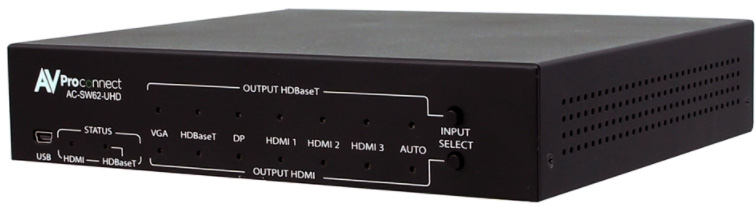 AVPro Edge AC-SW62-UHD (aka Easy Street) is a robust multi-format matrix switch designed for small offices, classrooms and conference rooms. This 6x2 matrix is designed to be an ALL-IN-ONE solution for the active office allowing for multiple input types, including HDMI (x3), VGA, DisplayPort. In addition to the local inputs, it has a HDBaseT input that is compatible with the AC-EX100WPP-UHD so you can use a Wall Plate Transmitter from anywhere in the room, or a separate room all together!