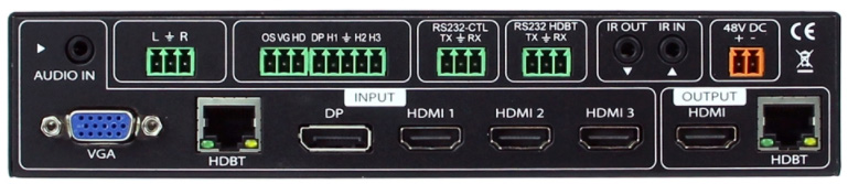 You can use RS232 or IR to control the unit in addition to being able to pass RS232 and IR signals to the the remote end over the HDBaseT output. Analog audio extraction is also available for a zoned or local audio system.