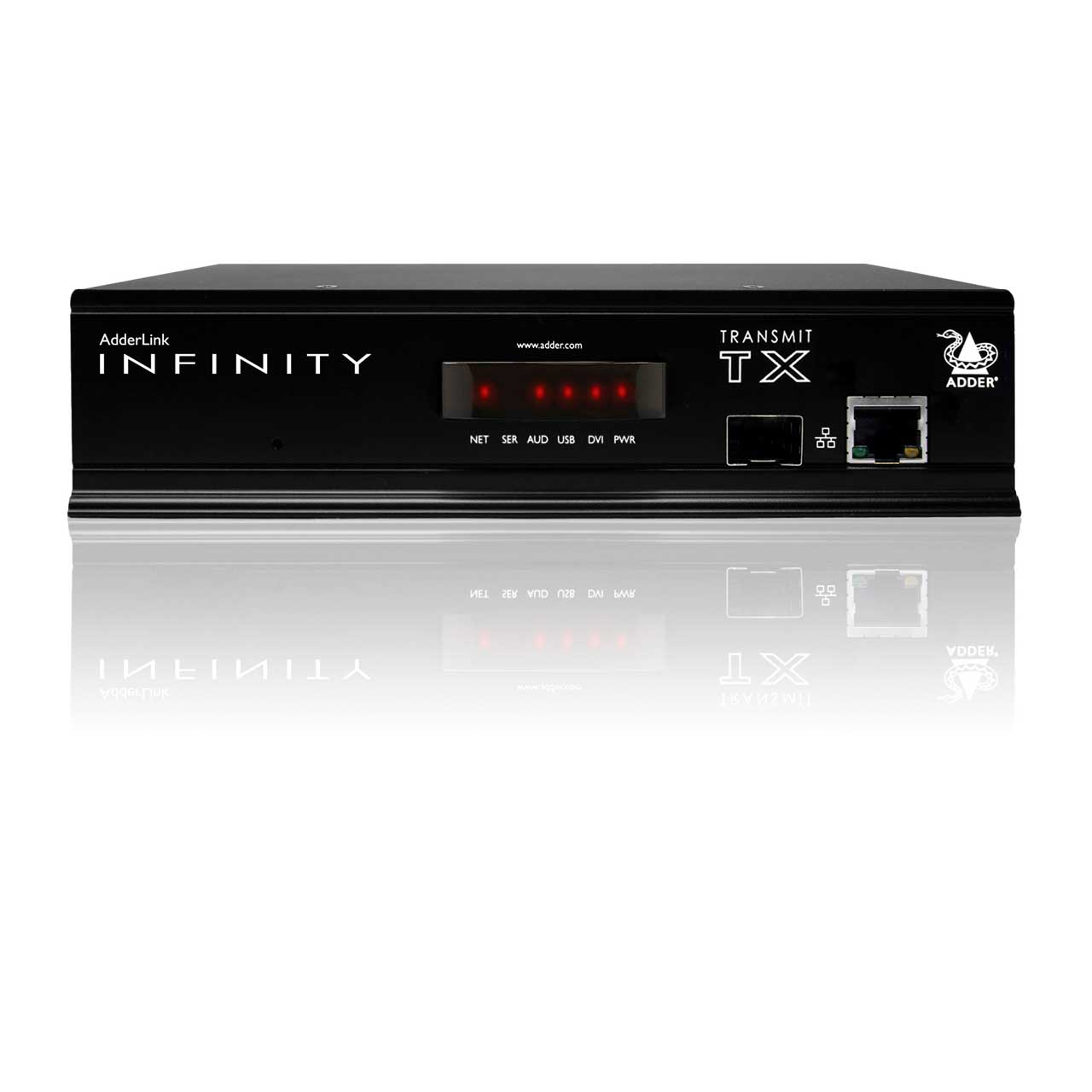 ADDERLink™ INFINITY 1002T is a high performance KVM (Keyboard, Video and Mouse) extender transmitter that forms part of the ADDERLink™ INFINITY matrix solution.This enables you to locate your critical computing hardware in a secure and temperature controlled environment away from the user work station, whilst maintaining a Pixel-Perfect desktop experience.