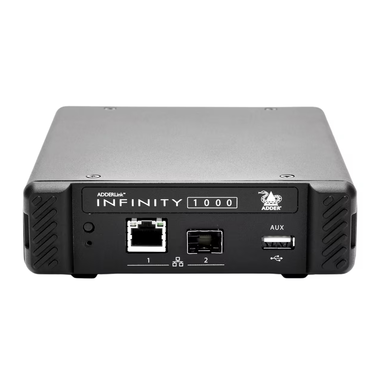 The ADDER ADDERLink® INFINITY 1104 is a high performance IP KVM extender that forms part of the ADDERLink INFINITY range. This enables the relocation of critical computing hardware into a secure and temperature controlled environment away from the user work station; while maintaining a pixel-perfect desktop experience.