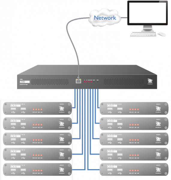 While individual Adder power adaptors perform well, as your installation expands and its devices proliferate, separate adaptors can become unwieldy and difficult to manage. The RED PSU1 provides a significant step up in terms of efficiency, reliability and power management