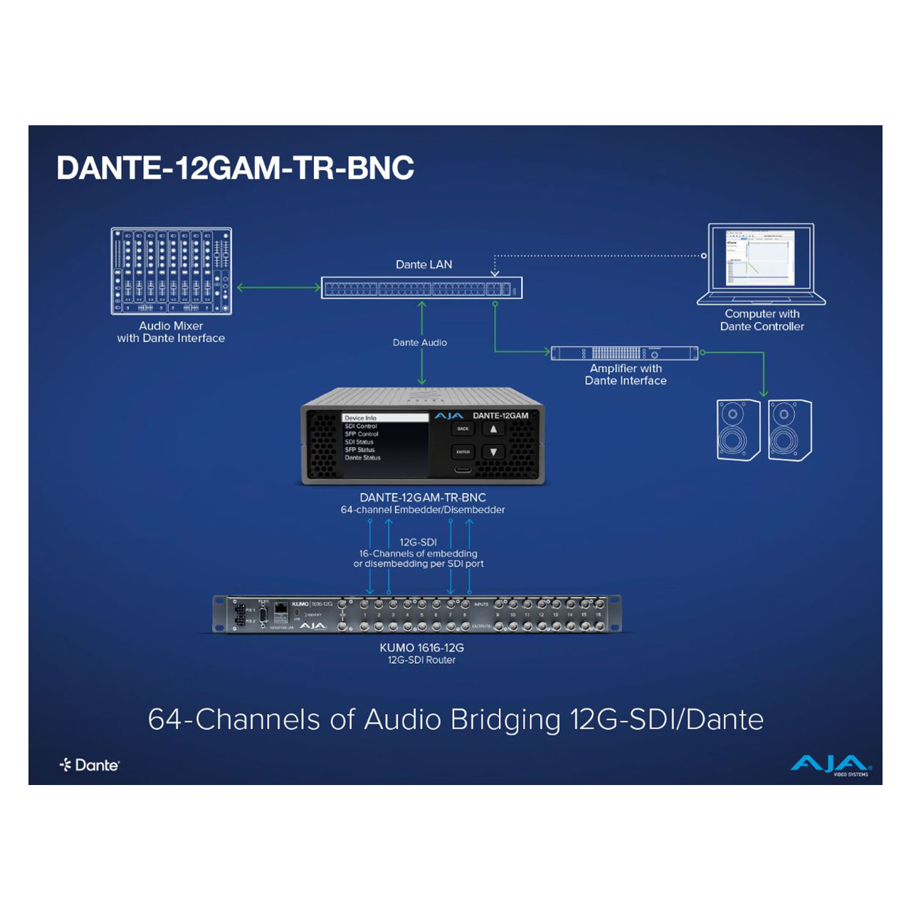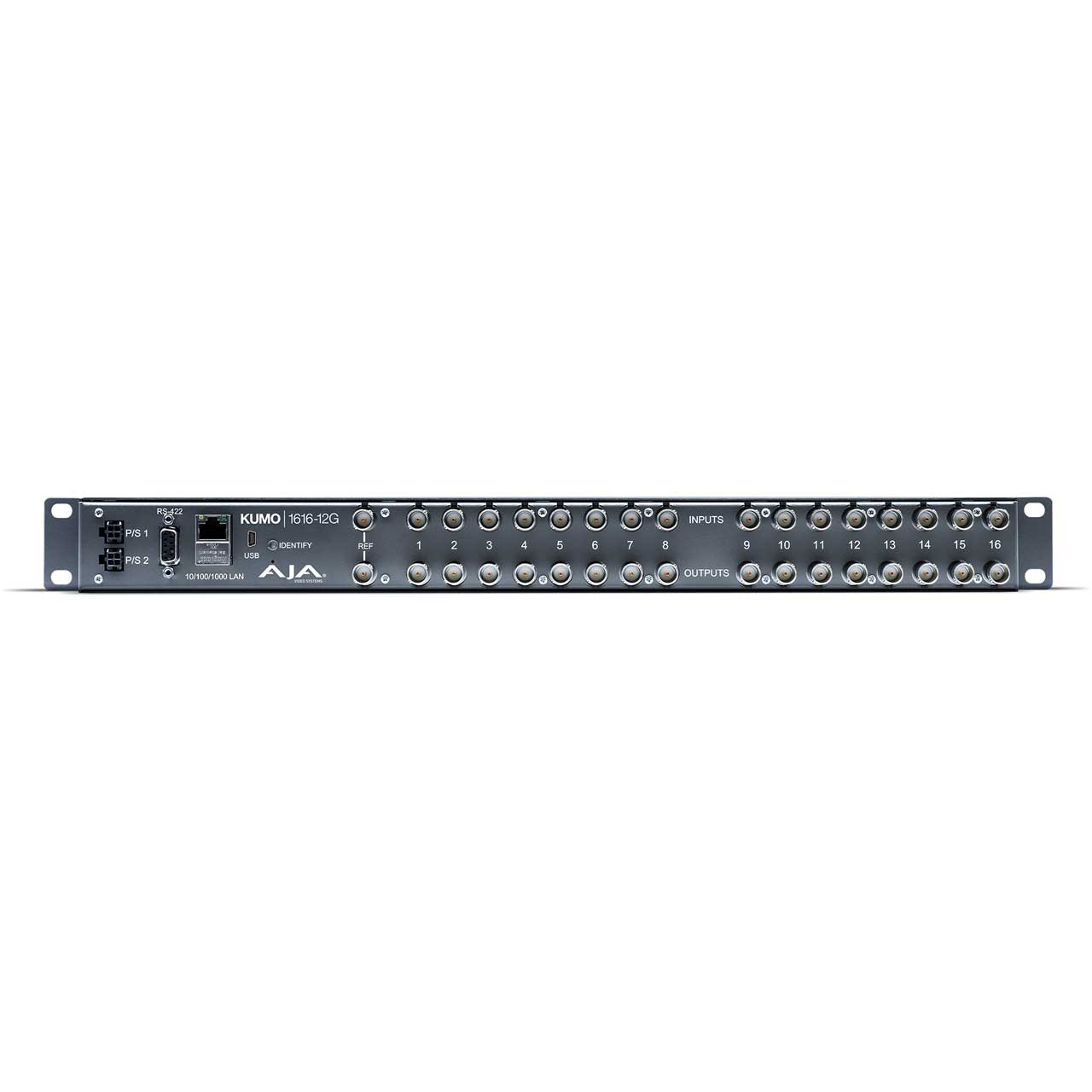 AJA's KUMO 1616-12G offers increased capacity for larger configurations while maintaining a compact 1RU profile with support for 12G-SDI/6G-SDI/3G-SDI/1.5G-SDI with 16x 12G-SDI inputs and 16x 12G-SDI outputs.