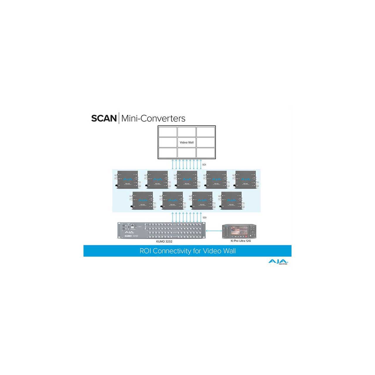 AJA's ROI-DVI Mini-Converter allows exceptionally high quality conversion of computer DVI and HDMI outputs to baseband video over SDI at an affordable price and a very portable size. With extensive audio functionality, incredible image scaling as well as aspect and frame rate conversion, ROI-DVI fulfills the growing need to properly incorporate computer signals into the video world without sacrificing budget or space.