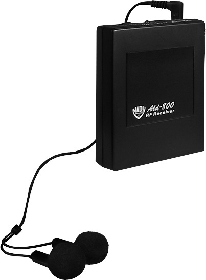 Audience members who desire listening assistance use a pocket size Nady ALD-800 receiver with adjustable volume control and ergonomic, high performance earphones. The ALD-800 system is expandable-one transmitter will provide audio to a limitless number of receivers.