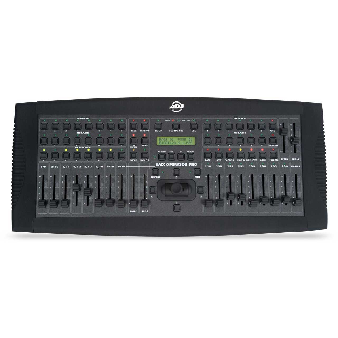 ADJ's DMX Operator Pro is a 136 channel hybrid lighting control device designed for DJ's, clubs and small touring applications. This controller allows operators to easily manipulate conventional and moving lights via simple to use buttons and faders. The DMX Operator Pro puts programming, playback and live manipulation of Scenes and Chases at your fingertips