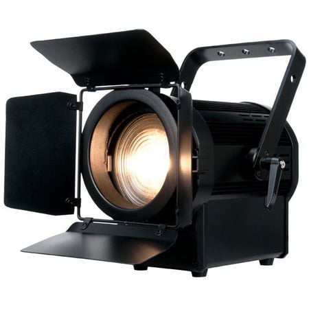 Part of the Encore stage lighting series, the ADJ Encore FR150Z lighting fixture is equipped with an 8-inch Fresnel lens and powered by a 130W LED engine. It produces a white wide, soft-edged beam for stage and theatre use at 3000K. It comes with barn doors to adjust the beam dispersion and a manual knob to change the beam angle from 15 to 38-degrees.