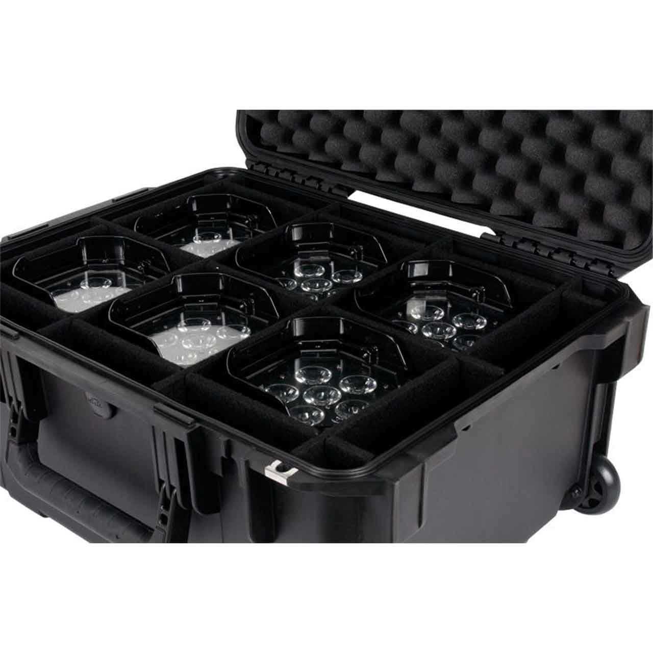 Securely transport and store up to six ADJ Element Par lighting fixtures. The case features six slots to hold Element Pars, wheels and a retractable pull handle.