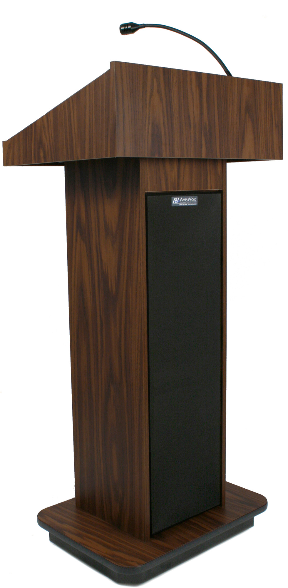 Use Amplivox’ s 150 watt Executive Column lectern with UHF 16 Channel Frequency with built-In receiver plus your choice of wireless mic: lapel & headset, flesh tone over-ear, or handheld microphone, to wirelessly communicate with audiences up to 1,950, rooms up to 19,450 square feet simple, modern lectern. Integrated control panel with microphone volume, auxiliary, bass and treble controls. The sensitive AmpliVox Electret Condenser Gooseneck Hit Mic picks up your voice from up to 20” away. Amplivox speaker technology delivers clear, high-performance, lifelike sound to your audience with built-in Jensen design speaker. Built in Bluetooth Module allows you to wirelessly stream sound from any Bluetooth capable device. Scratch resistant melamine finish, skirted base, and radiused corners for beautiful styling and durability that will stand the test of time. The large reading table with raised edges holds your notes, wile 2 storage compartments in back hold everything else. This lectern effortlessly moveable, with the help of 4 industrial hidden casters (2Lock) Includes 10 foot power cord.