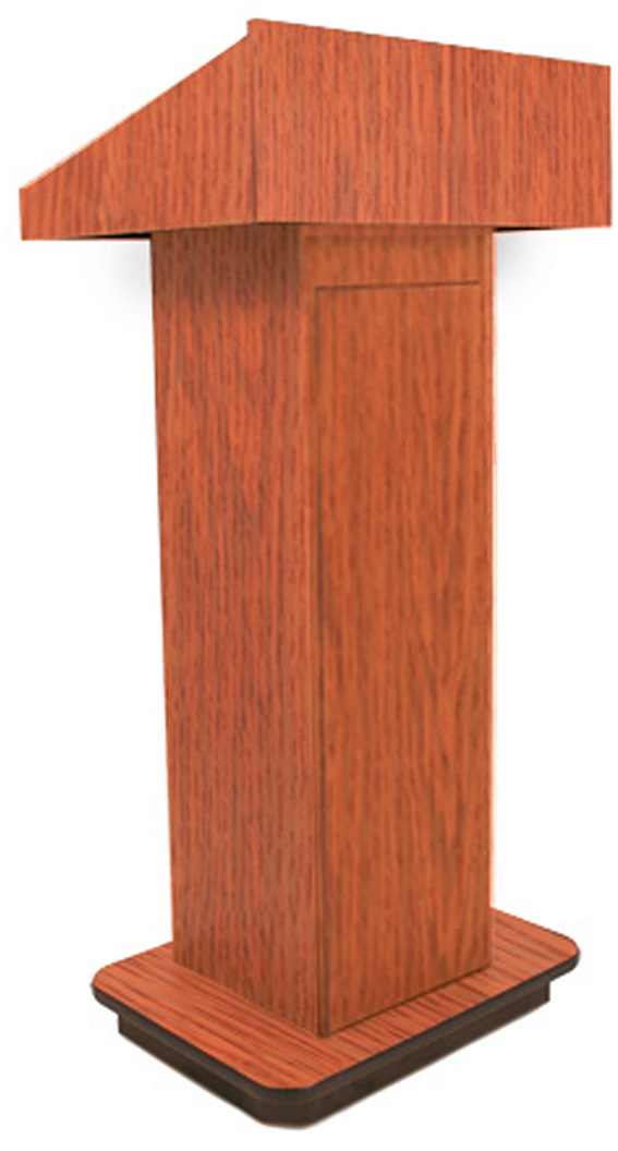 The Executive Sound Column Lectern is a full height lectern that fits well in any decor with its modern styling and easily moves from room to room on 4 easy-glide casters. 47"h x 22"w x 17"d. Scratch resistant melamine finish, skirted base, and radiused corners for beautiful styling and durability that will stand the test of time. The large reading table with raised edges holds your notes, while 2 storage compartments in back hold notebooks, folders or books . Great in Boardroom, Meeting Room or Auditorium. Non-Sound lectern. Available Colors: Cherry (CH), Mahogany (MH), Maple (MP), Oak (OK) , Walnut (WT), or Black (BK) Made in the USA.