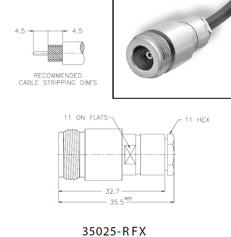 Amphenol 000-35025-RFX 50 Ohm N Connector - N CLAMP SOLDER (F) RG-58C/U