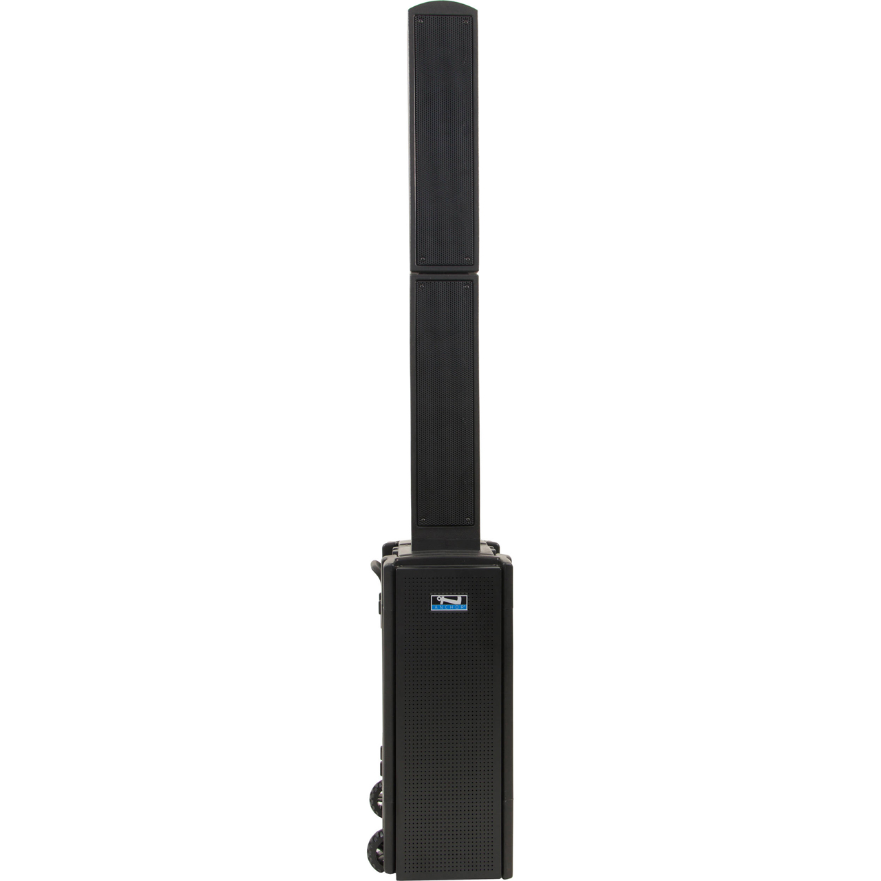 • Line array components that include eight 4" neodymium speakers in the tower, and three 8" neodymium subwoofers in the base
