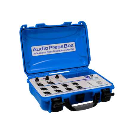 AudioPressBox APB-312 C-USB Portable Mini Active Conference Press Box - 2 Mic & Line In/8 Line & Mic Out/USB-C - Blue
