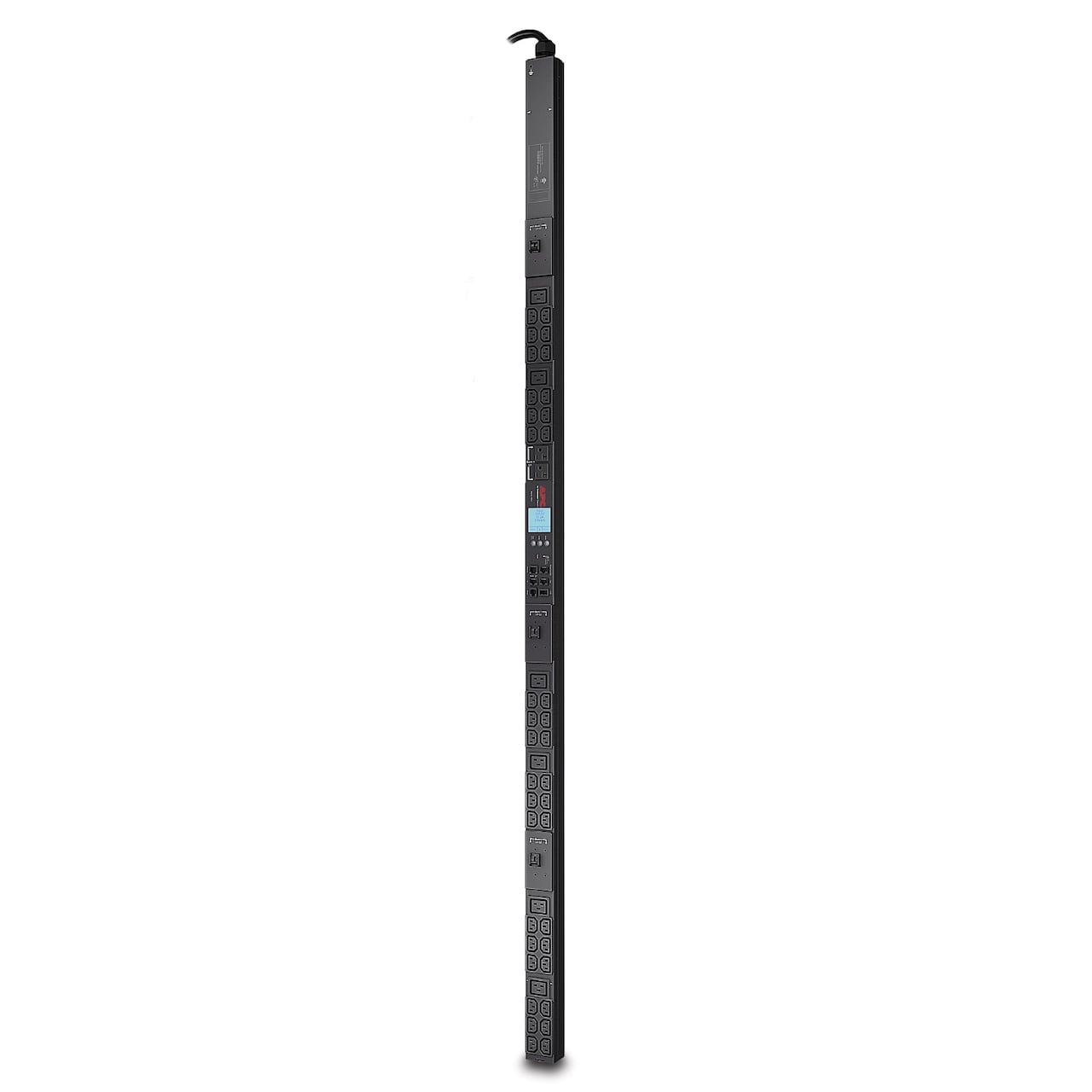 The APC AP8865 is a NetShelter Metered Rack PDU with 36x C12, 6x C19 and 2x NEMA 5-20R Outlets. It's a 3 Phase 30APC Metered Rack PDUs distributing reliable rack power via a single input with multiple output receptacles. Real-time remote monitoring and user-defined alarms help prevent potential circuit overloads that can cause accidental power loss to critical equipment. Easily access, configure, and manage this metered PDU from remote locations. A network management interface provides standards-based management via Web, SNMP, and Command Line Interface. Locking IEC receptacles enable locking power cord compatibility to reduce the probability of accidentally disconnecting cords and dropping loads. Volts, amps, real power (kW), and energy (kWh) data is provided to support energy management. An embedded log memory to reports historic metered data. Display details current, power, and voltage measurements and offers local user access. An environmental monitoring port for external temperature/humidity monitoring is available (sensor sold separately model AP9335T or AP9335TH). Easily mount this vertical PDU in racks or enclosures. It occupies zero U of valuable rack space, which allows space for more equipment in the rack. This vertical PDU does not require additional tools to mount into APC NetShelter Enclosures. Enables a quick recovery from overload events and breakers are ultra-low profile.