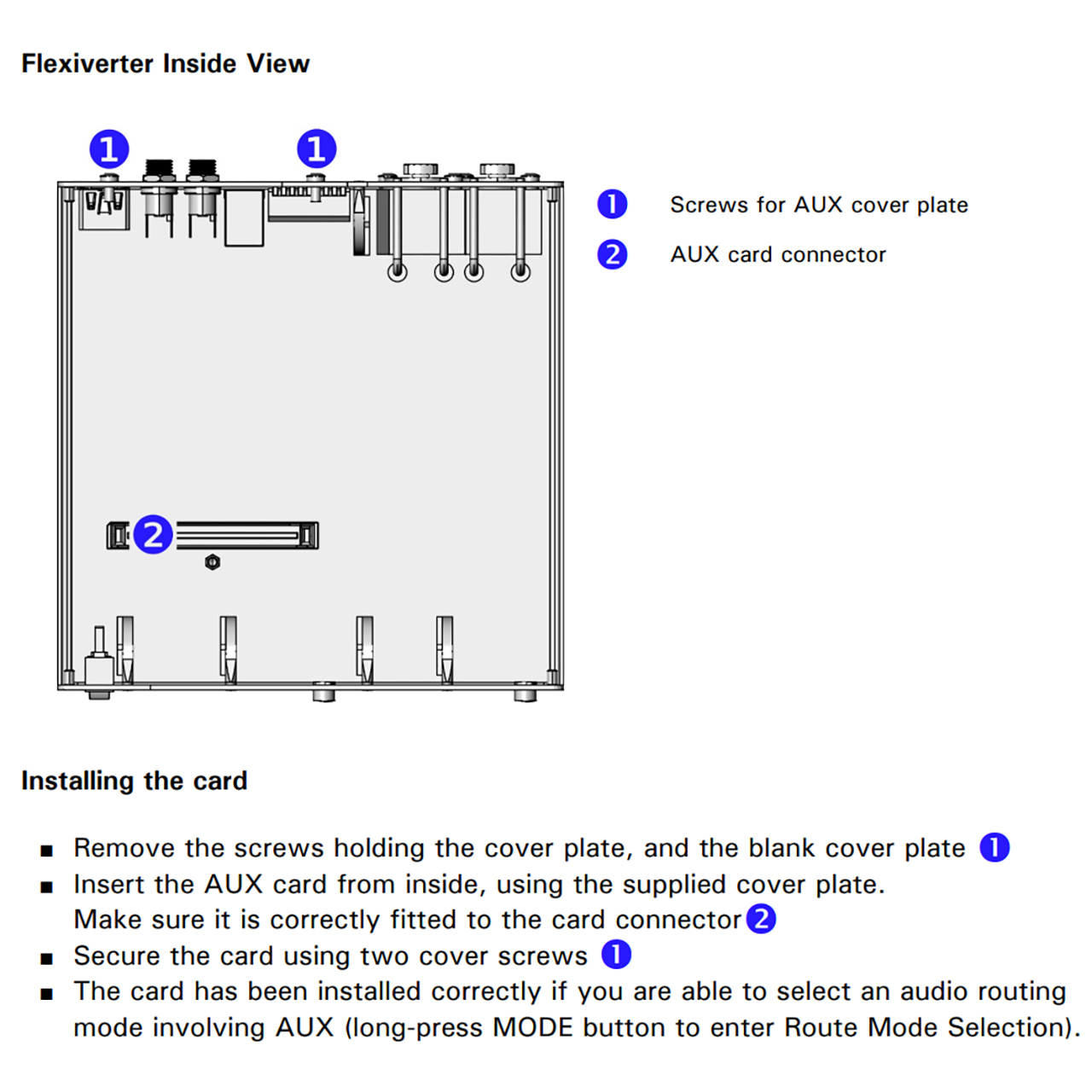 • To use the FLX as standalone converter between the built-in interface and this extension card