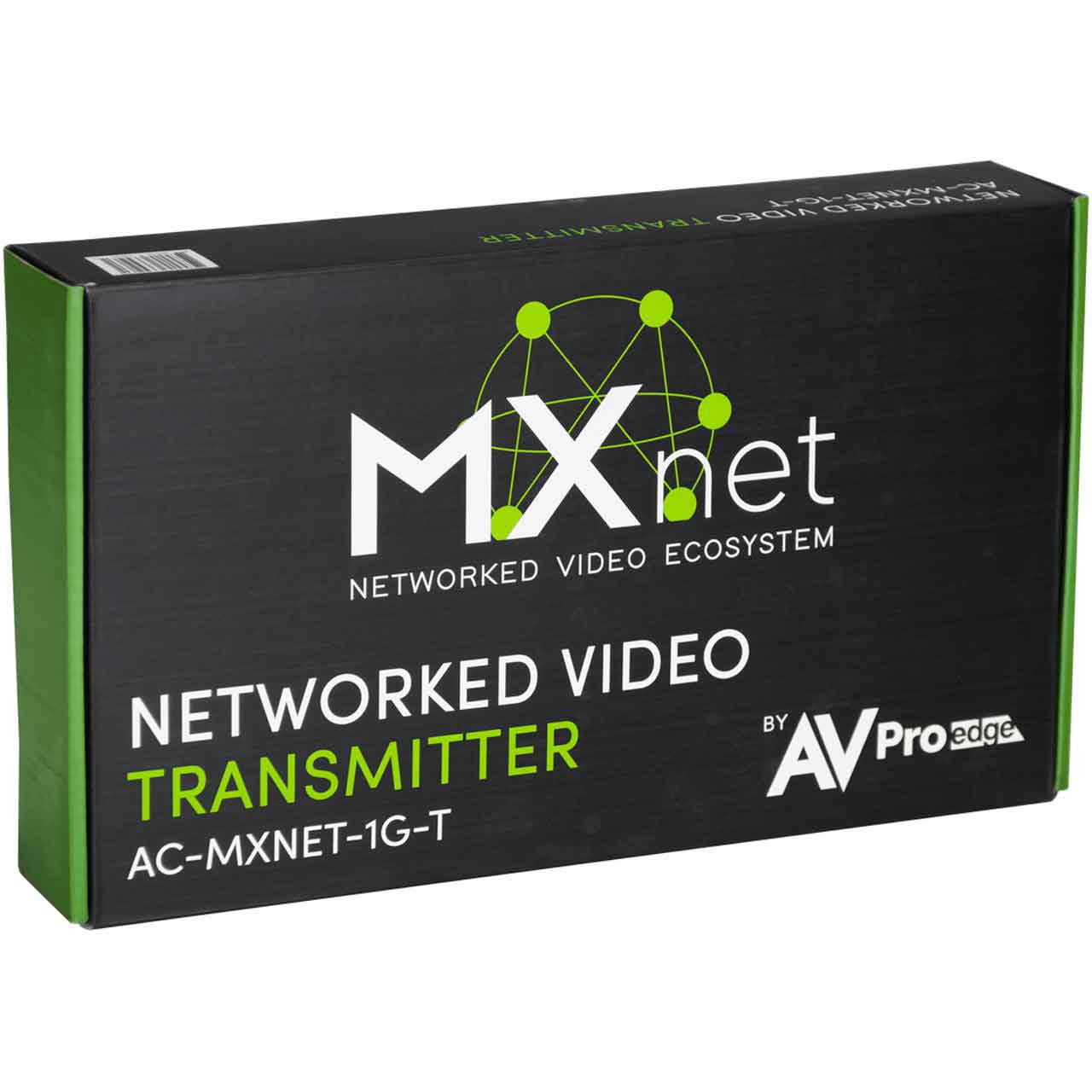 This is where the signal starts - the AVPro Edge AC-MXNET-1G-E MXNet Encoder/Transmitter device. Connect this to any HDMI source, and it will encode the audio/video signal into a multicast data format that can be routed to any Decoder endpoint within the project/installation. This device connects directly via category cable (CAT 6A recommended) or fiber optics to the MXNet Switch (AC-MXNET-SW48) or any other compatible multicast-capable managed L3 network switch. The AC-MXNET-1G-E is a part of the MXNet family of AV-over-IP products from AVPro Edge.