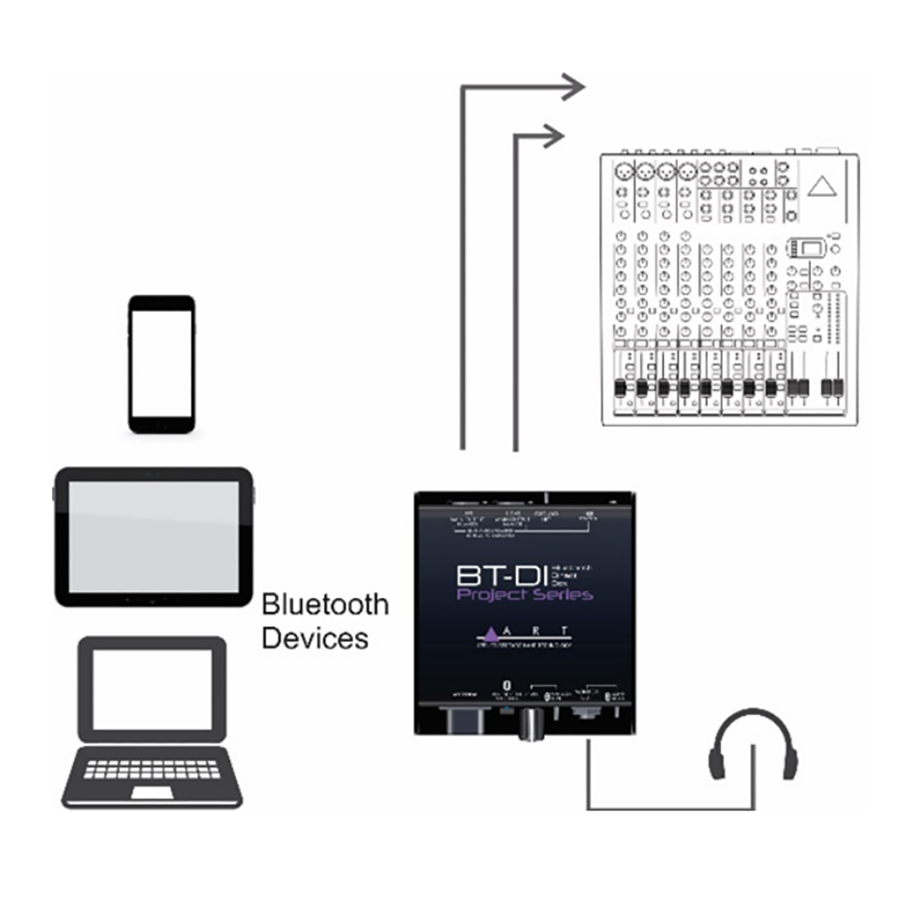 The BT-DI Works well with computers, Bluetooth capable tablets and various mobile devices (cell phones). This extends your signal distance without the use of cabling and offers a balanced low impedance audio path for your audio source.
