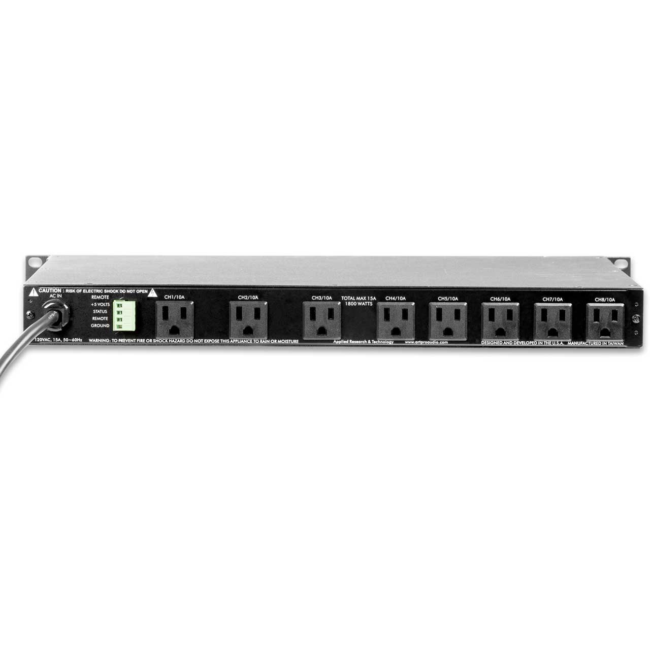 The ART PS8-II provides controlled power sequencing to eight rear AC outlets. Each output's power up / power down is delayed by a fixed amount determined by the front panel, user definable, Sequence Delay control. This allows you to power up and down in a sequenced, controlled fashion to smooth out inrush currents and minimize turn-on transients that may damage sensitive equipment.