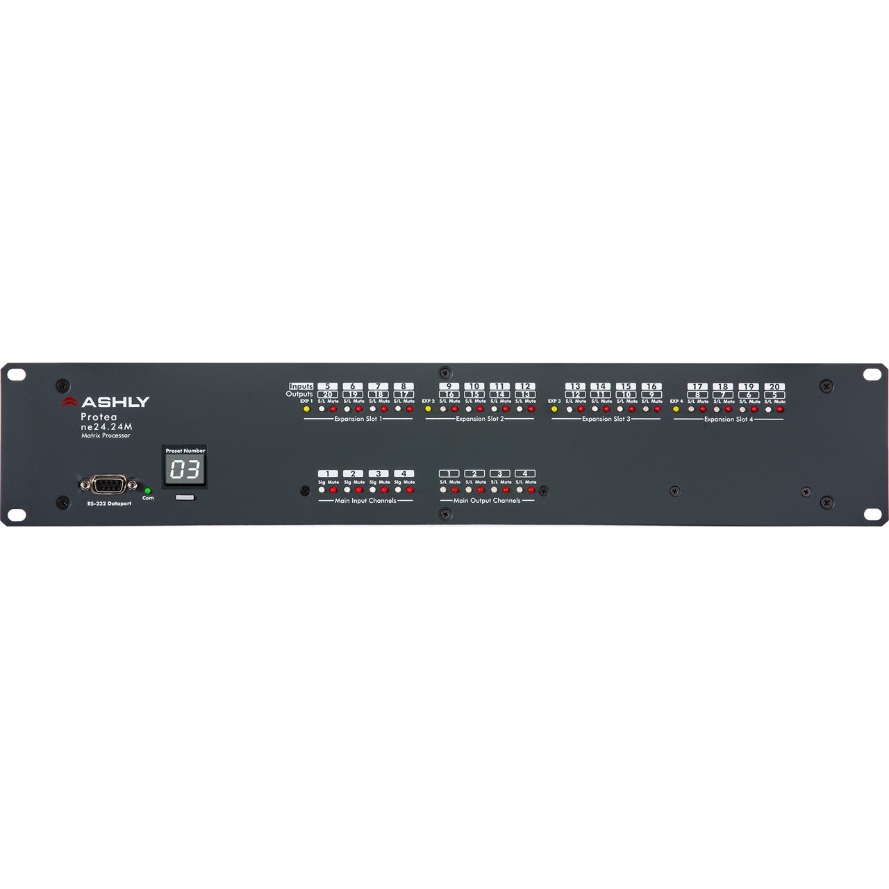 When your install requires input/output matrixing with signal processing it doesn't get much easier than programming your channels using Protea™ ne Software on your PC. The Ashly Audio ne24.24M uses modular expansion cards to provide up to 24-channels of audio matrixing and processing. This unit offers a 12-input/8-output configuration. Each input and output expansion card has an individual DSP processor allowing you to expand the total input or output 4 channels of DSP processing at a time. These cards are easily installed in the field without the need to reprogram the device.