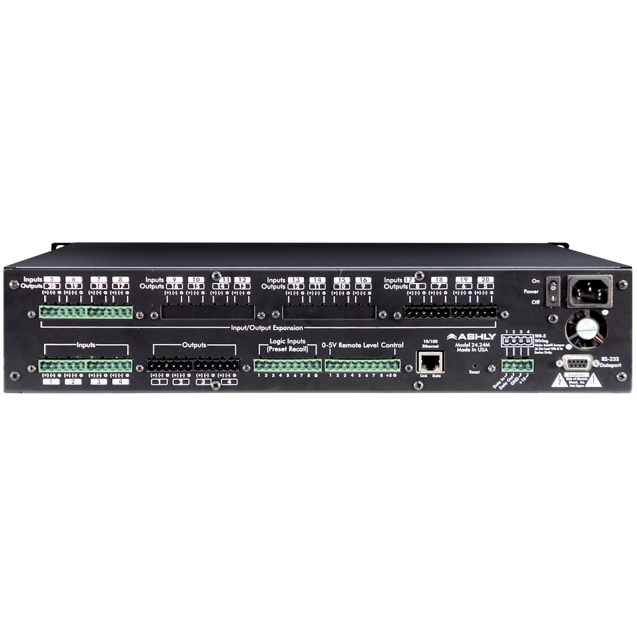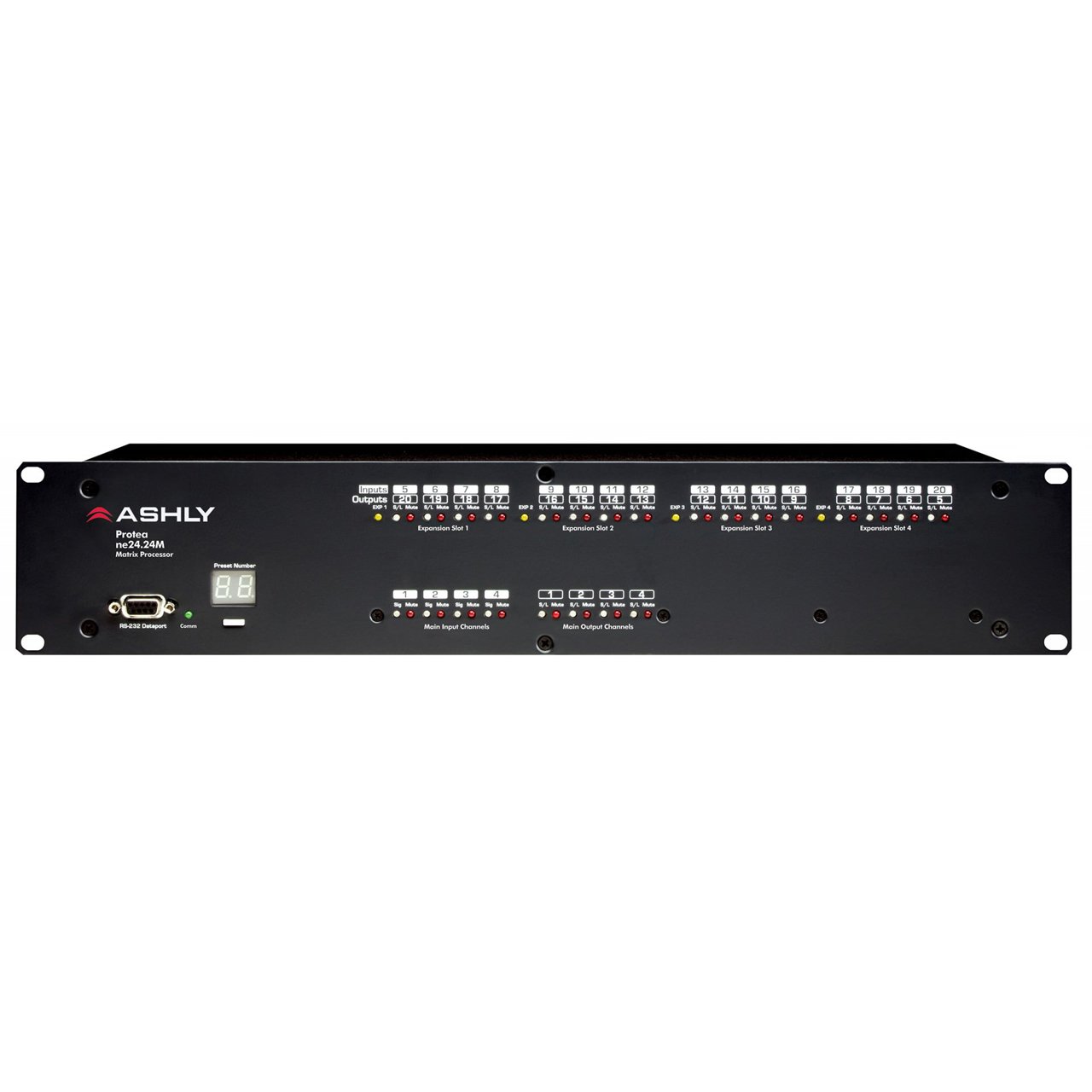 When your install requires input/output matrixing with signal processing it doesn't get much easier than programming your channels using Protea™ ne Software on your PC. The Ashly Audio ne24.24M uses modular expansion cards to provide up to 24-channels of audio matrixing and processing. This base unit offers a 4-input/4-output configuration. Each input and output expansion card has an individual DSP processor allowing you to expand the total input or output 4 channels of DSP processing at a time. These cards are easily installed in the field without the need to reprogram the device.