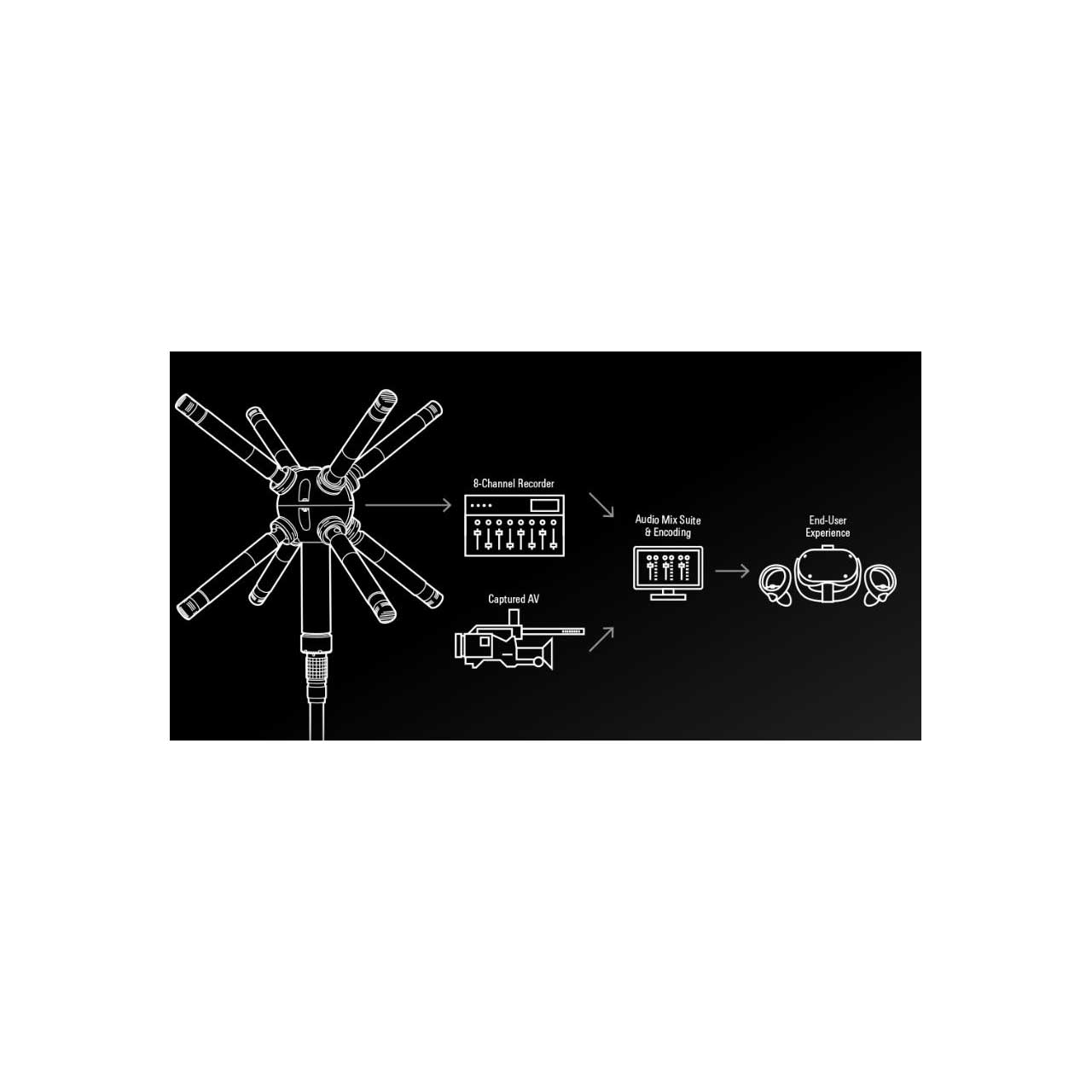 The BP3600 consists of eight 3.5" (8.8 cm) long microphone assemblies that extend to form a cube, the capsules equidistant from the center and separated from one another by 15 cm. This eight-channel near-coincident array provides ample spaciousness and controlled separation not found in other all-in-one immersive audio microphones. The hypercardioid capsules are equidistant from the center and create an eight-channel near-coincident array providing full and controlled separation.