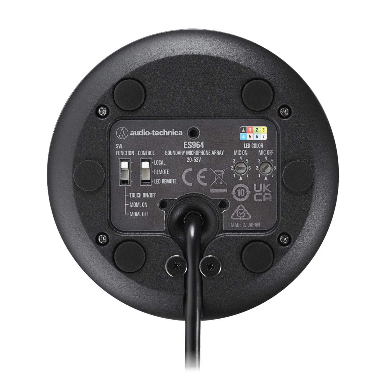 The Audio-Technica ES964 is a compact boundary microphone array that is simple to install and provides clear audio for multi-person conference environments. This microphone is designed for small-group online conferences, and for businesses that are considering installation or expansion of shared or permanent conference spaces. With its low-profile design, the microphone takes up minimal space on a tabletop, but still captures clear, natural sound for online calls.