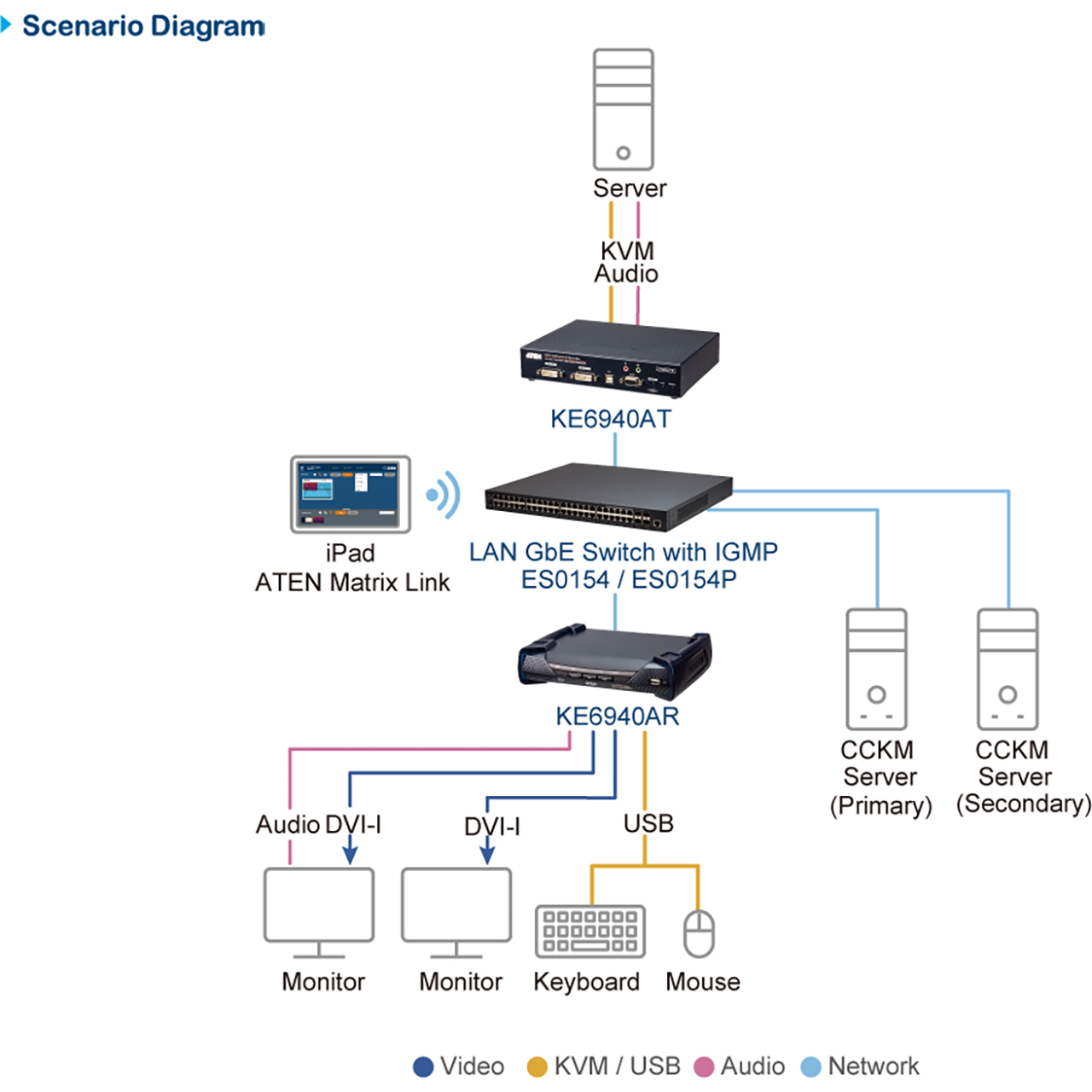 As an IP-based matrix extender, the KE6940A can be used as a point-to-point/point-to-multipoint/multipoint-to-point extender, or integrated into a KVM over IP Matrix System (multipoint-to-multipoint) when combined with the CCKM, providing more flexible applications in different working environments.