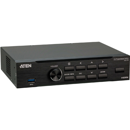 The ATEN VP2120 is a Seamless Presentation Switch that integrates video matrix switch, quad-view multistreaming, audio DSP, and idea-sharing platform into one compact device. With the seamless switching between streamed-in sources, the online idea exchanging features, and the network capability that enables the wireless connection for mobile devices, the VP2120 and ATEN Video Presentation Control App empower wireless BYOD collaboration anytime when a short catch-up, quick meeting, instant brainstorm, stand-up, or ad hoc call is needed.