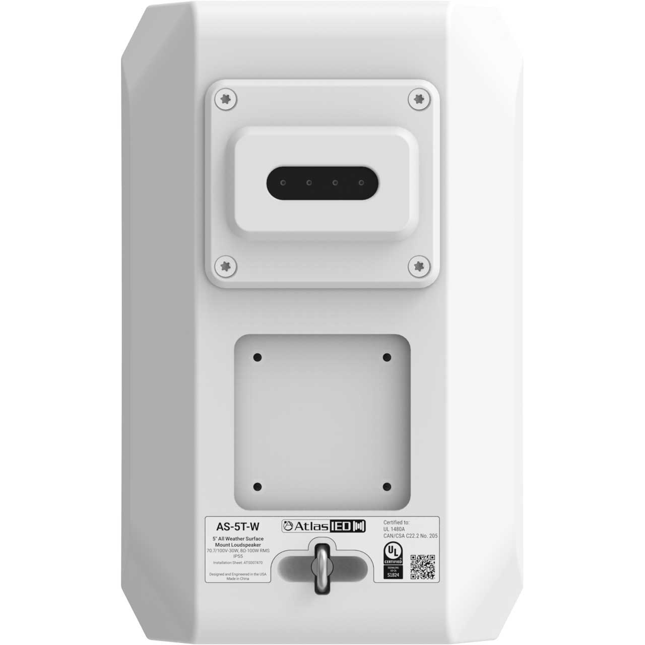 The AtlasIED AS-5T is a two-way compact Surface-Mount weather resistant loudspeaker designed for a wide variety of sound reinforcement applications where durability, modern, understated aesthetics, and outstanding sonic performance are prerequisites.