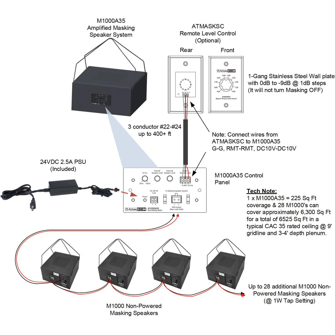• 1x AtlasIED ATMASKSC Sound Masking & Commissioning Precision Level Control Wallplate
