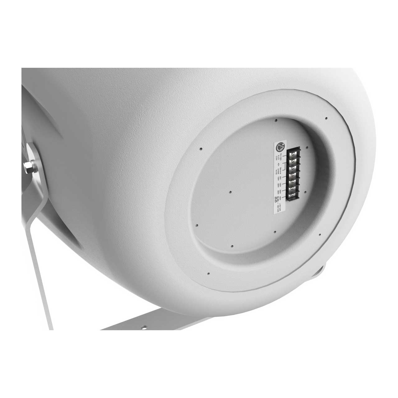 The unit is constructed using molded linear low-density polyethylene (LLDPE), creating an incredibly strong yet lightweight enclosure. The unit includes a stainless steel U-bracket and fly-points allowing for easy mounting. Input is via an integrated 70.7V transformer with low insertion loss and full frequency response with power taps up to 400-watts including an 4Ω bypass. The transformer is discretely mounted under the rear cover for weather protection. The finish is neutral "battle ship grey" that is UV resistant and allows for years of durability.