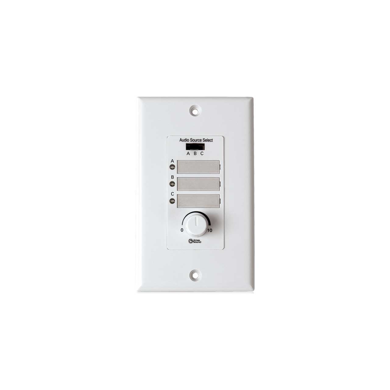 The WPD-MIX42RT is a decor style wall plate that is designed for remote activation of the TSD-MIX42RT mic/line mixer. The WPD-MIX42RT features an audio source slide selector as well as a source volume control. The unit includes an LED indicator to indicate which source is selected and if it is active. The unit fits in a single gang electrical outlet and uses an 8-conductor interface connection that includes a single 4 position removable Phoenix connector and dual 2 position Phoenix style connectors. When connected to the TSD-MIX42RT and the Juke Box Override, any page made through the system will override the selected source so that the page can be heard clearly.
