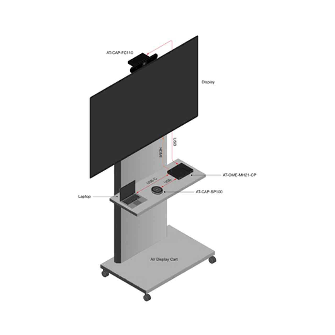 The Atlona AT-OME-MH21 is a compact, versatile switcher with HDMI and USB-C inputs. It is equipped with features for complete AV integration in huddle rooms and small meeting spaces, including automatic switching and display control, audio de-embedding, and a USB 3.0 hub for video conferencing peripherals or touch displays. Part of the Omega™ Series of integration products for modern AV communications and collaboration, the OME-MH21 is HDCP 2.2 compliant and supports 4K HDR and 4K/60 4:4:4 at HDMI data rates up to 18 Gbps. Additionally, 4K downscaling to 1080p @ 60, 30, or 24 Hz is available when connected to an HD display. The OME-MH21 includes USB 3.0 and USB-C interfaces for two host PCs, plus two USB Type-A ports for peripheral devices such as a camera, microphone, speakerphone, touch-enabled display, or keyboard and mouse.