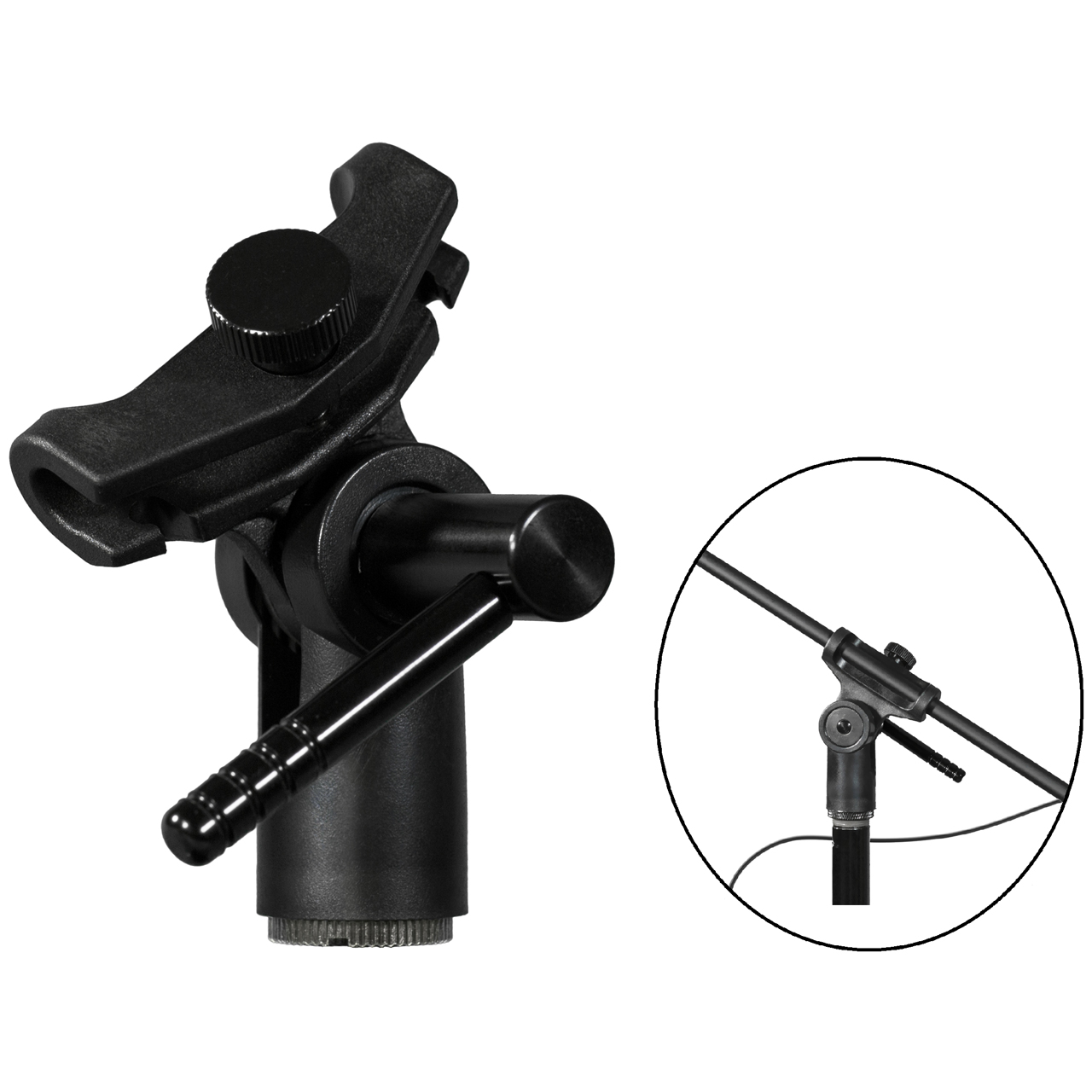 The Audix MBW84BHC is a modular system designed to deploy the M1370BHC hypercardioid wireless microphone up to 9ft above finished floor making it ideal for miking tiered choirs, musical ensembles or ambient miking and is simple to use. The microphone attaches to the mini-XLR connector at the end of the gooseneck on the 84" carbon fiber boom arm. To release and remove the microphone from the connector, simply push the button on the side of the mini-XLR and pull the microphone off. The boom arm then attaches to any mic stand with a standard thread. (Not included). Using either the supplied 3 or 4 pin cable (whichever is applicable) the boom arm is connected to a wireless body pack transmitter using the same push button connector described above. The wireless body pack may be mounted directly to the boom arm at the lower connector housing using the included MBWCLIP or mounted to the mic stand using the included MBWFLEX.