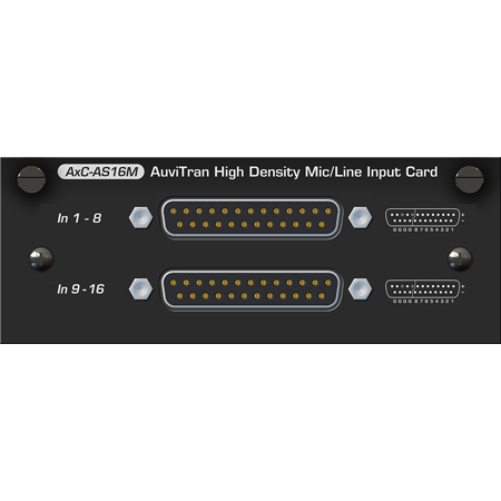 Like all other cards within the Audio ToolBox range, the Auvitran AxC-AS16Mo can be used in either the AVBx7 or AVBx3 platforms. Using only 1 slot of the Audio ToolBox, the AxC-AS16Mo provides 8 high-end Mic/Line input (both line and microphone level) plus 8-line outputs with an incredible density for the AuviTran Audio ToolBox platform.