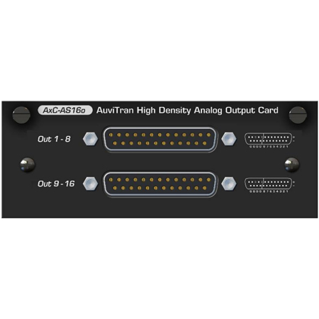Like all other cards within the Audio ToolBox range, the AxC-AS16o can be used with either the AVBx7 or AVBx3 platforms. Sixteen channels of high-density analog output AxC cards with DB-25 connectors combining high performance DA converter chips in an incredible compact size for high-end audio professional applications.