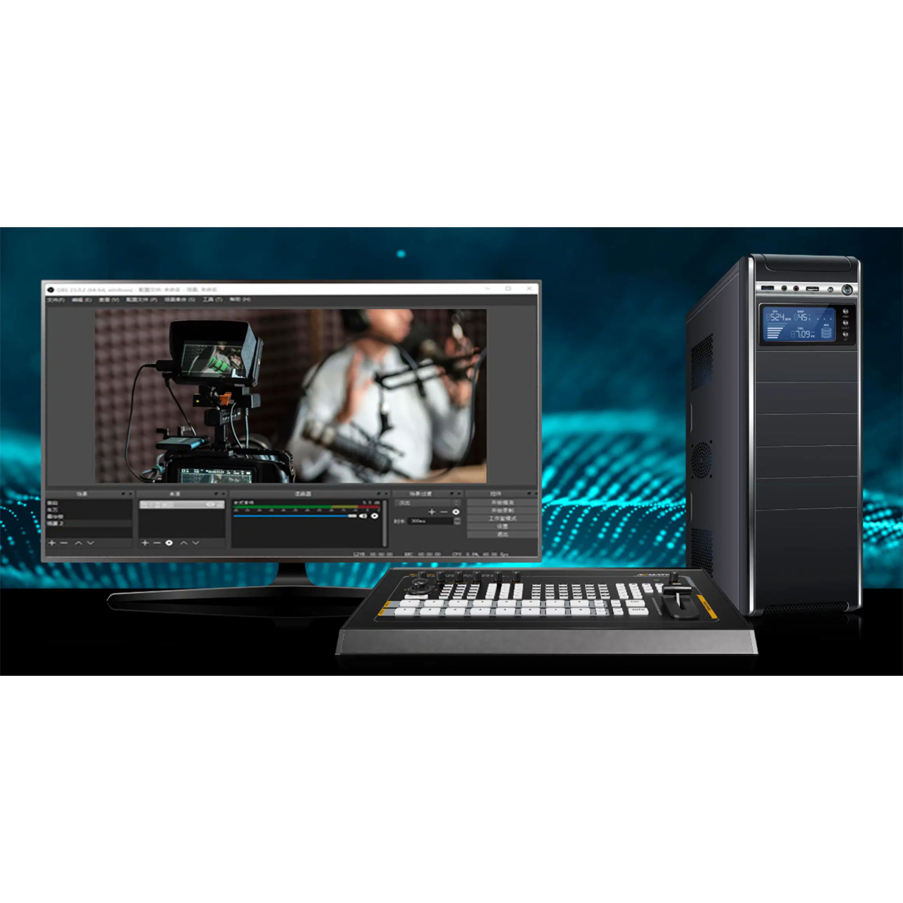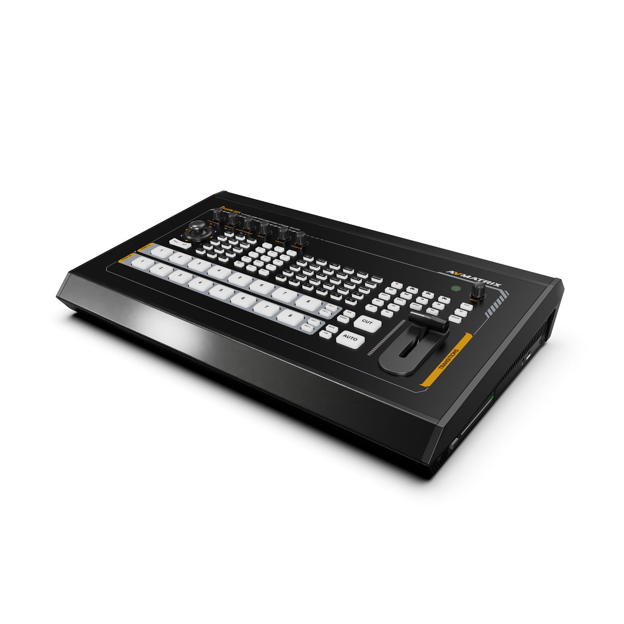 The switcher integrates 3 powerful upstream keys for users to configure PIP, LUMA Key, Chroma Key freely, and DSK, logo overlay. Position and size of these keys can be easily adjusted through the buttons or the menu knob.