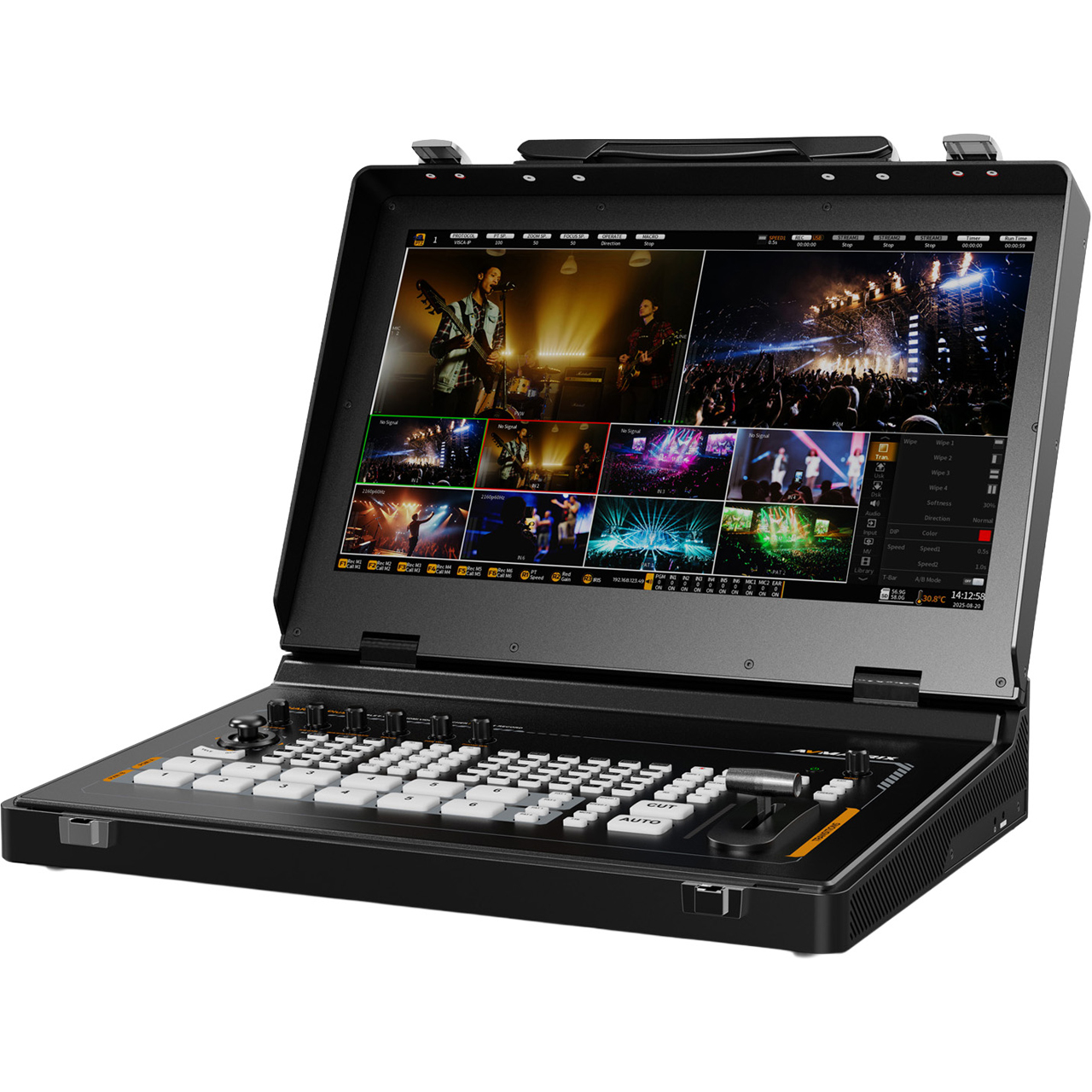 The AVMATRIX SHARK S6 PLUS is a 6 Channel SDI and HDMI portable video switcher. The built-in 17.3" HD IPS screen clearly displays PVW, PGM, audio bar, multiview, audio settings, PTZ camera settings, FN key configurations, and anything else you would need for your production.