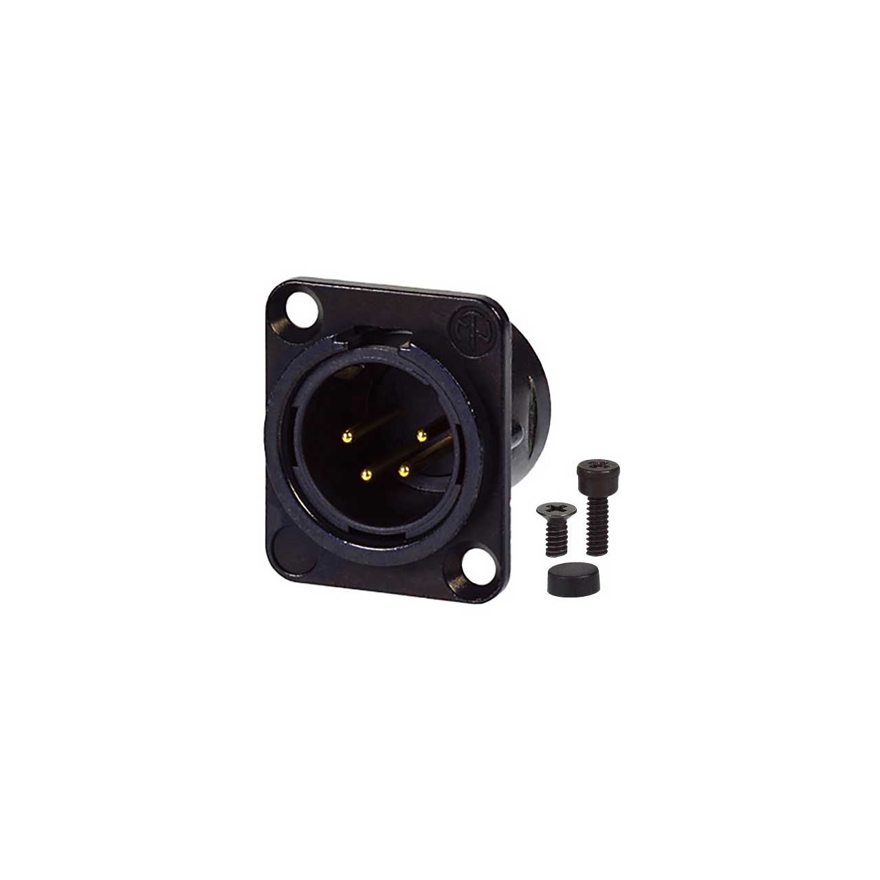 The UMNC4MD-L-B-1 is a Maxxum Single D Mount, Neutrik NC3FD-L-B-1, 4 Pole Male, Black/Gold, Adapter Plate(s) and/or Hardware, MIS Color-Code.