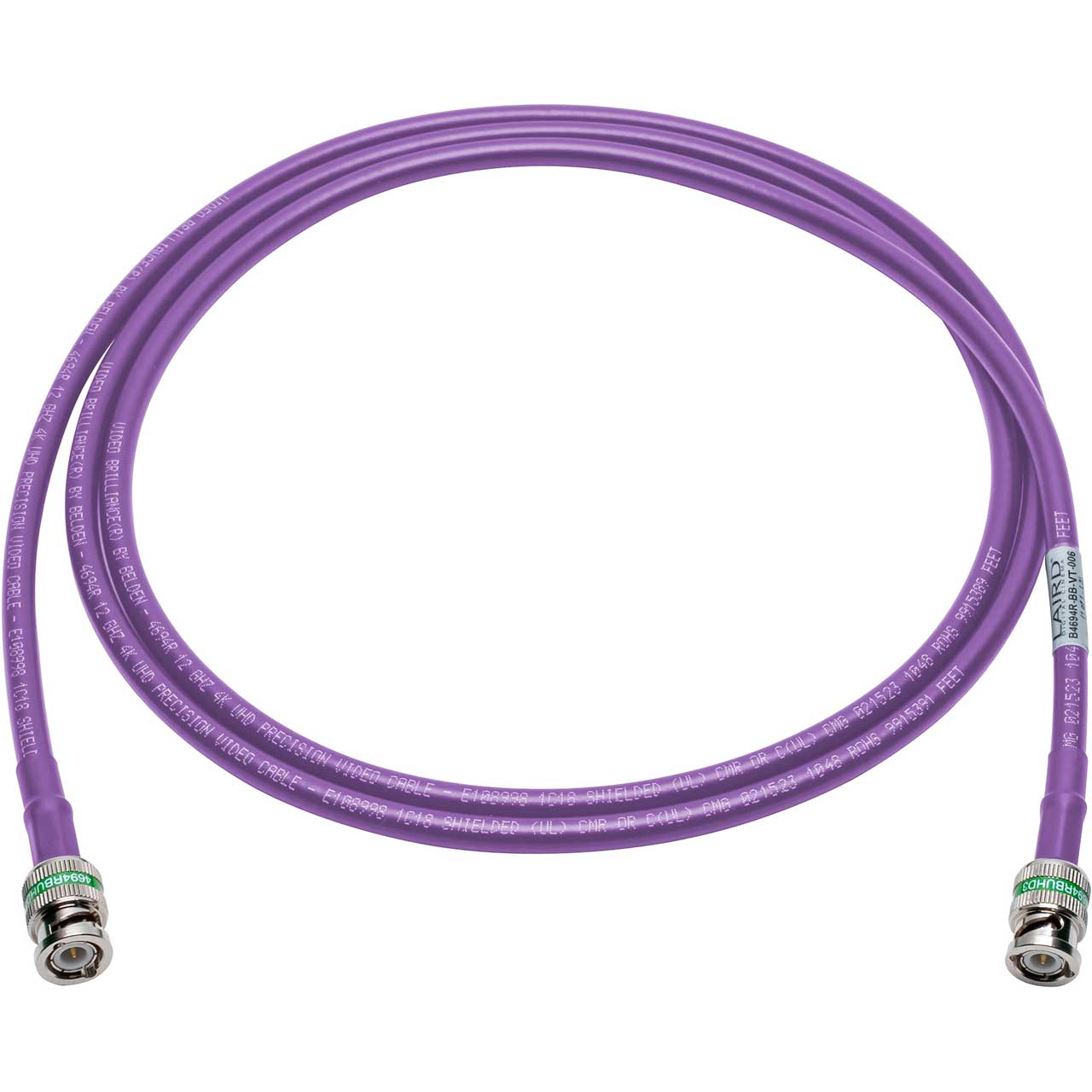 Laird B4694R-BB RG-6 75 Ohm 12G-SDI/4K UHD Belden 4694R Male BNC Cable - Violet - 50 Foot