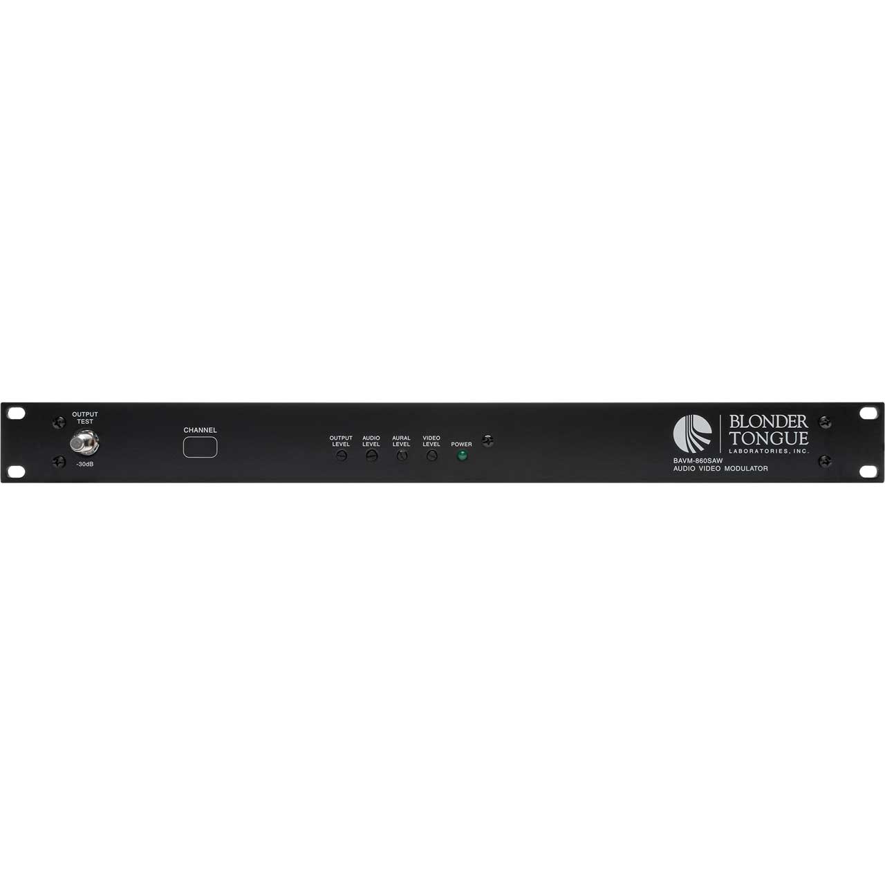 The Blonder Tongue BAVM-860SAW is an economical commercial quality TV modulator. It provides a +55 dBmV RFoutput on any specified CATV channel from 2 to 135 (54 to 860 MHz). HRC and IRC frequency plans are also available. The BAVM-860SAW is ideal for placing A/V program sources such as satellite receivers, VCR's, DVD's, cameras or TV demodulators onto standard 6 MHz NTSC TV channels for broadband distribution. The BAVM-860SAW features IF SAW filtering with built-in FCC group delay pre-distortion assuring excellent adjacent channel performance and color operation. The modulator complies with FCC 21006 with +/- 5 KHz visual carrier stability and required frequency offsets on all aeronautical channels. For BTSC stereo applications, a field-defeatable audio preemphasis network is provided making theBAVM-860SAW compatible with any outboard stereo generator that provides a composite baseband output. A -30 dBoutput test point and all user controls are provided on the front panel.