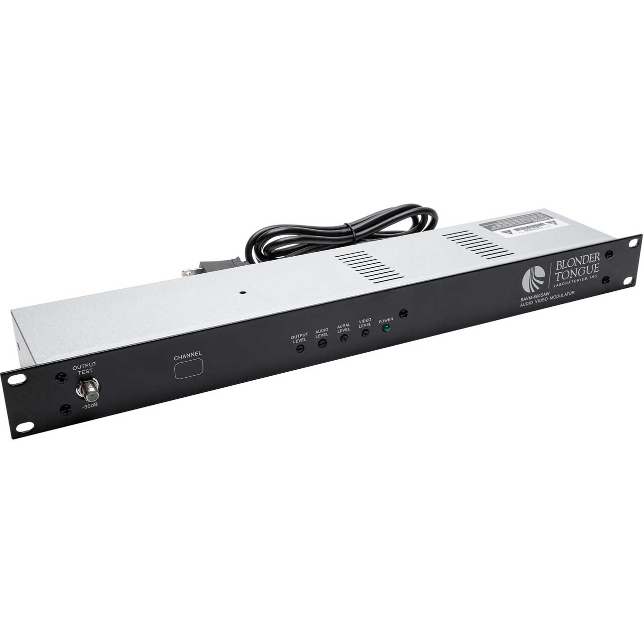 The Blonder Tongue BAVM-860SAW is an economical commercial quality TV modulator. It provides a +55 dBmV RFoutput on any specified CATV channel from 2 to 135 (54 to 860 MHz). HRC and IRC frequency plans are also available. The BAVM-860SAW is ideal for placing A/V program sources such as satellite receivers, VCR's, DVD's, cameras or TV demodulators onto standard 6 MHz NTSC TV channels for broadband distribution. The BAVM-860SAW features IF SAW filtering with built-in FCC group delay pre-distortion assuring excellent adjacent channel performance and color operation. The modulator complies with FCC 21006 with +/- 5 KHz visual carrier stability and required frequency offsets on all aeronautical channels. For BTSC stereo applications, a field-defeatable audio preemphasis network is provided making theBAVM-860SAW compatible with any outboard stereo generator that provides a composite baseband output. A -30 dBoutput test point and all user controls are provided on the front panel.