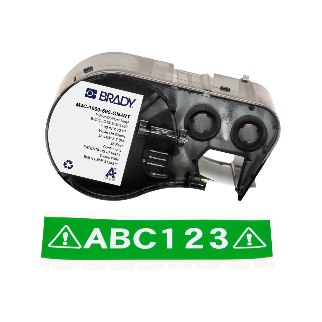 Brady M4C-1000-595-GN-WT All Weather Adhesive Vinyl Label Tape with Ribbon for M4/M5 Printers - 1 Inch - White on Green